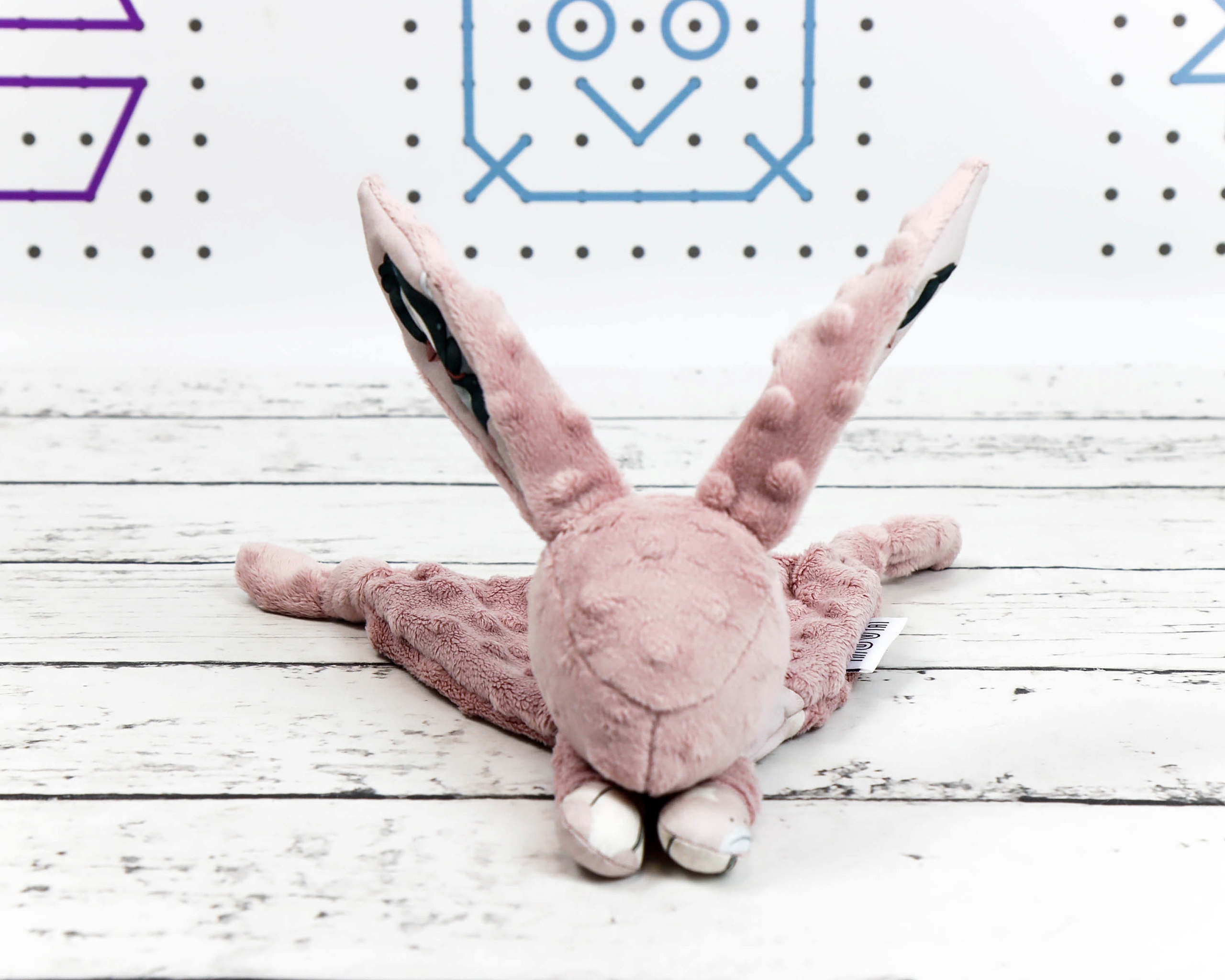 Уши и лапки идеальны, чтобы их кусать, кусать и дергать. Зайчик легкий и небольшого размера, прекрасно лежит в маленьких ручках, его можно легко рассмотреть со всех сторон и изучить его текстуру, строение, запах и цвет.