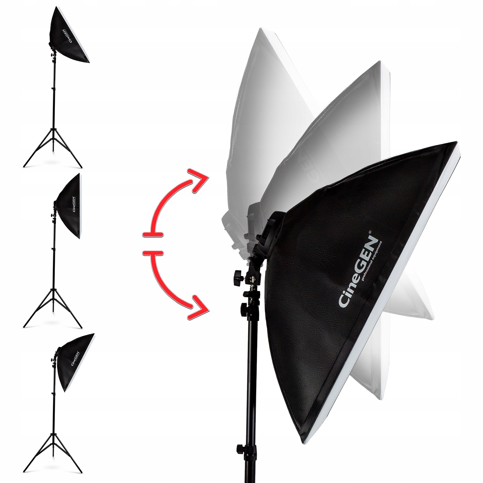 Наслаждайтесь идеальным освещением с новым поколением ламп Lumilux™ от CineGEN®. Двигаясь к совершенству, традиционные люминесцентные лампы были заменены светодиодными лампами Ignitix™, а дизайн самих софтбоксов был улучшен.