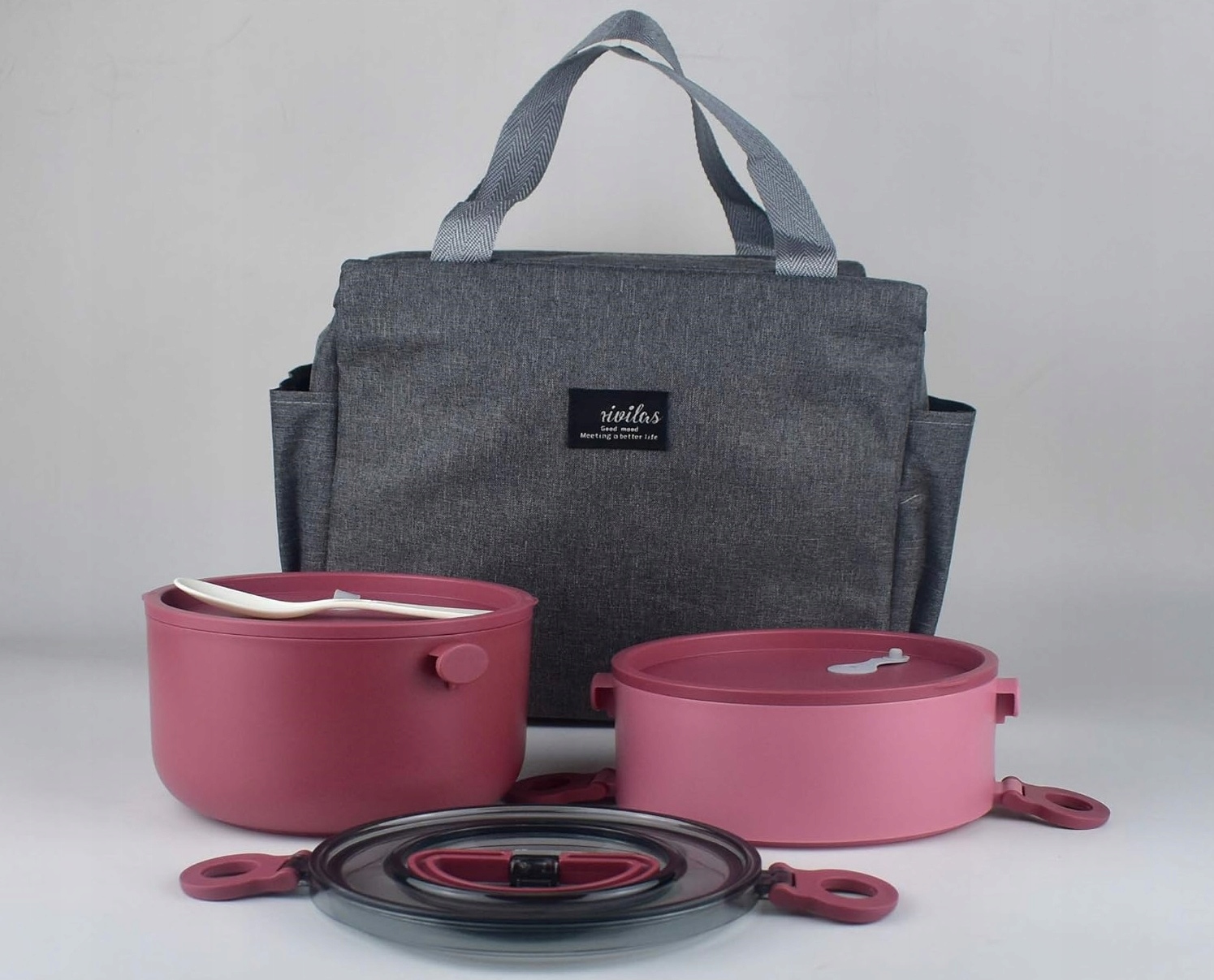 Луновый контейнер для обеда. 2-слойная портативная обеденная коробка 1600 мл. С изоляционной сумкой. Можно нагреть в микроволновой печи h1>