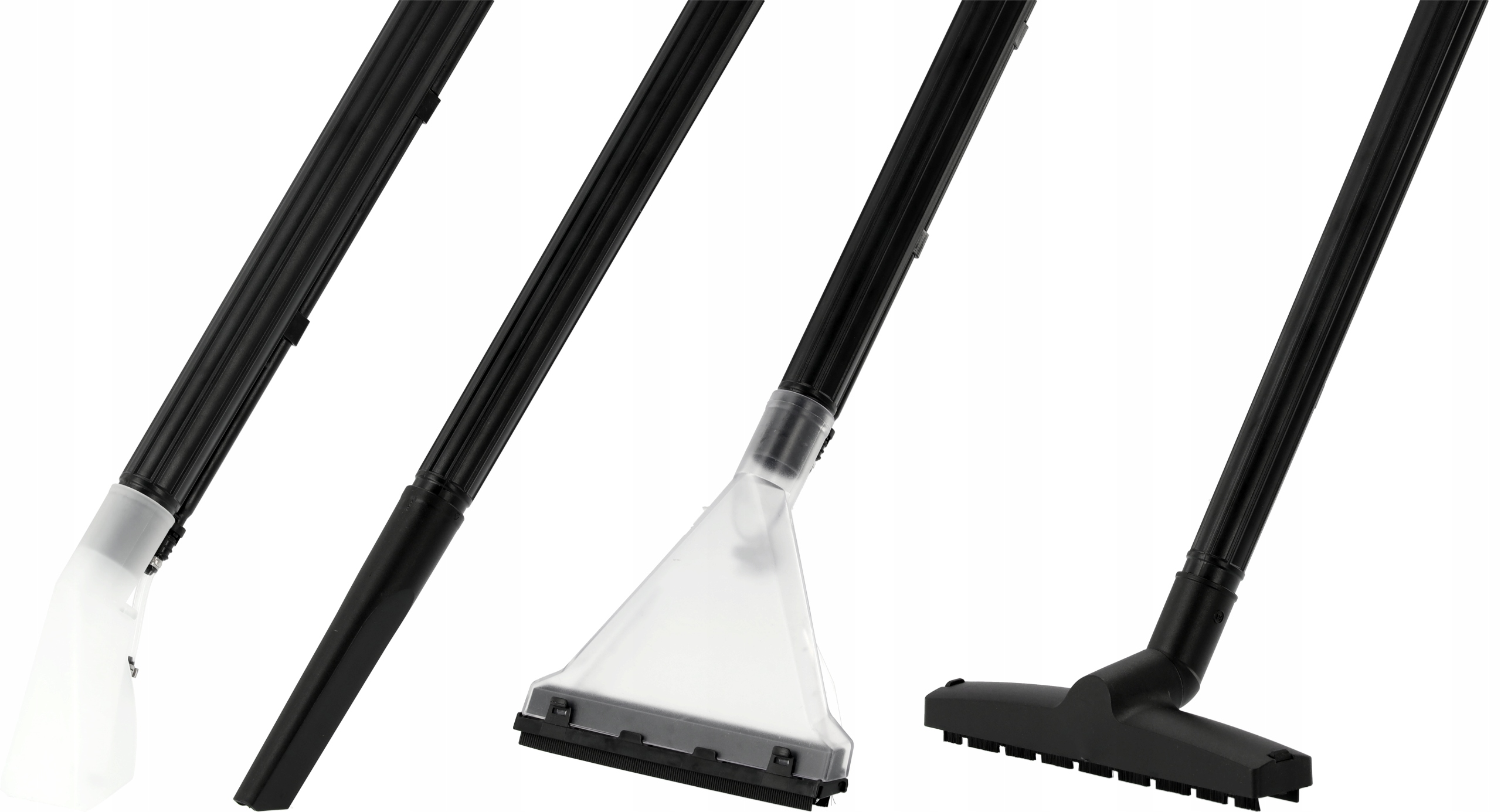 - Содержимое набора: пылесос, гибкий шланг, удлинительная трубка x2, узкая насадка для мытья, щетка для мытья, узкая насадка, щетка для пола, фильтр x2.