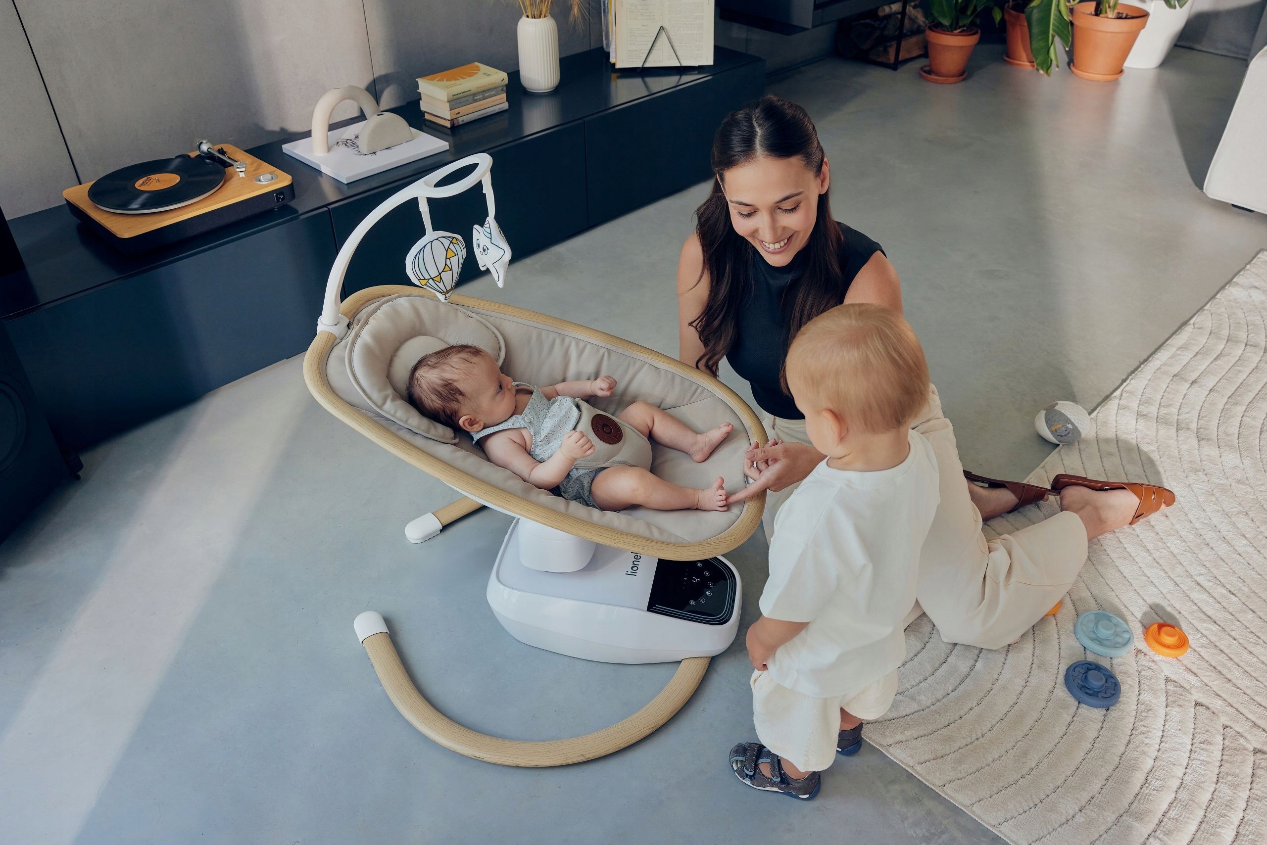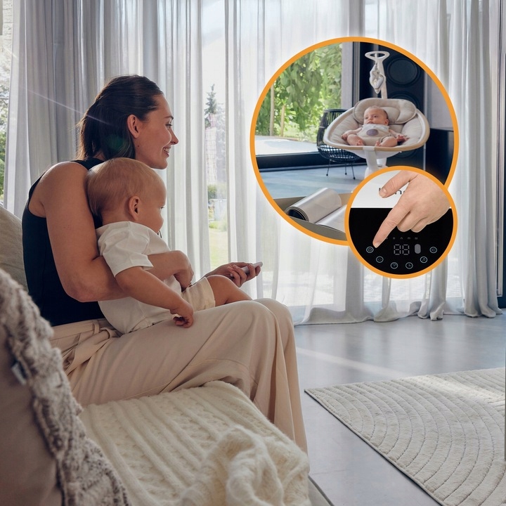 Способность вращать сиденье на 180 ° не только изменяет направление качания, которое дополнительно занято ребенком, но также позволяет вам постоянно поддерживать зрительный контакт между ребенком и родителем , когда, например, родитель движется вокруг комнаты. Это оказывает успокаивающее влияние на ребенка.