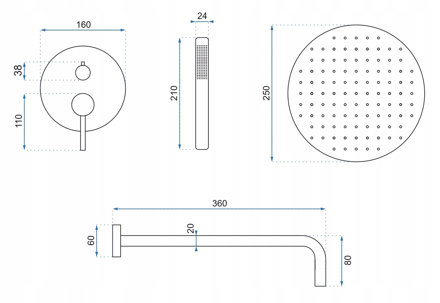 - Дождевой душ: Ultra Slim 25x25 см