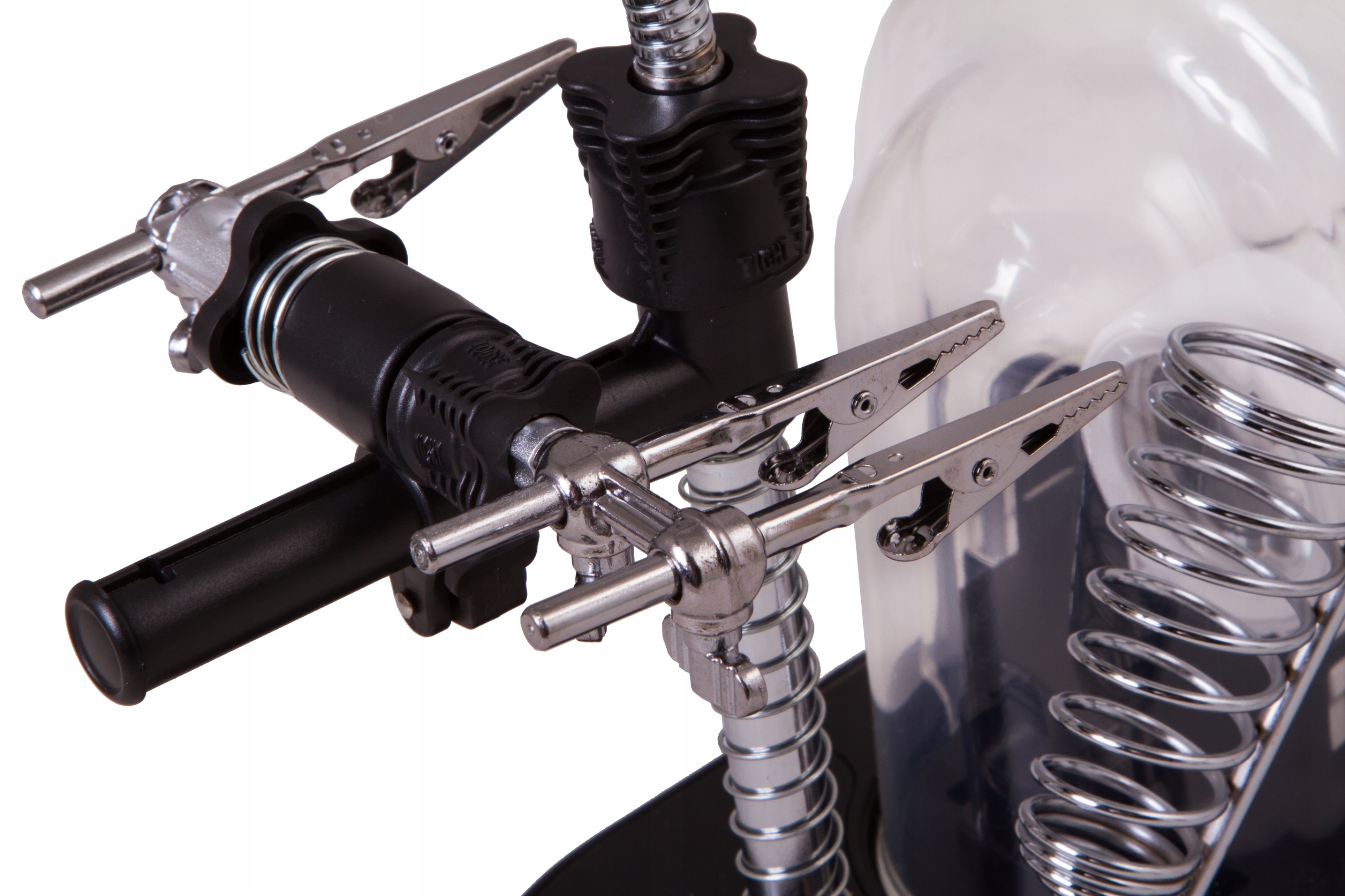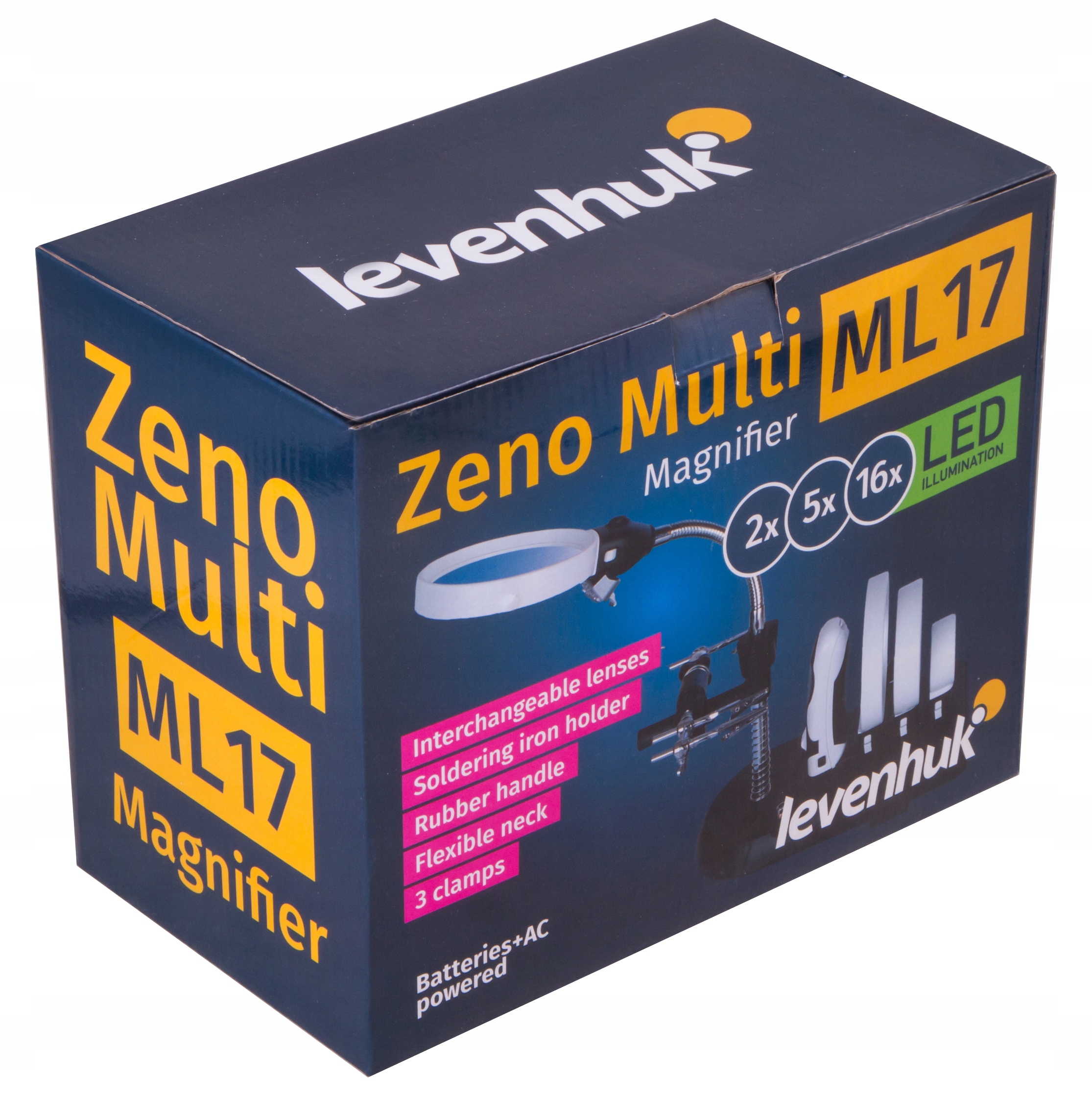 Эта лупа выполняет функции всех необходимых оптических инструментов. Имеет устойчивую подставку с гибким держателем, к которому крепятся сменные объективы. При покупке вы получаете три ручные лупы, три настольные лупы и настольную лампу. Линзы доступны с различными уровнями увеличения и диаметрами. Лупа Levenhuk Zeno Multi ML17 также оснащена фиксаторами и специальным держателем для паяльника.