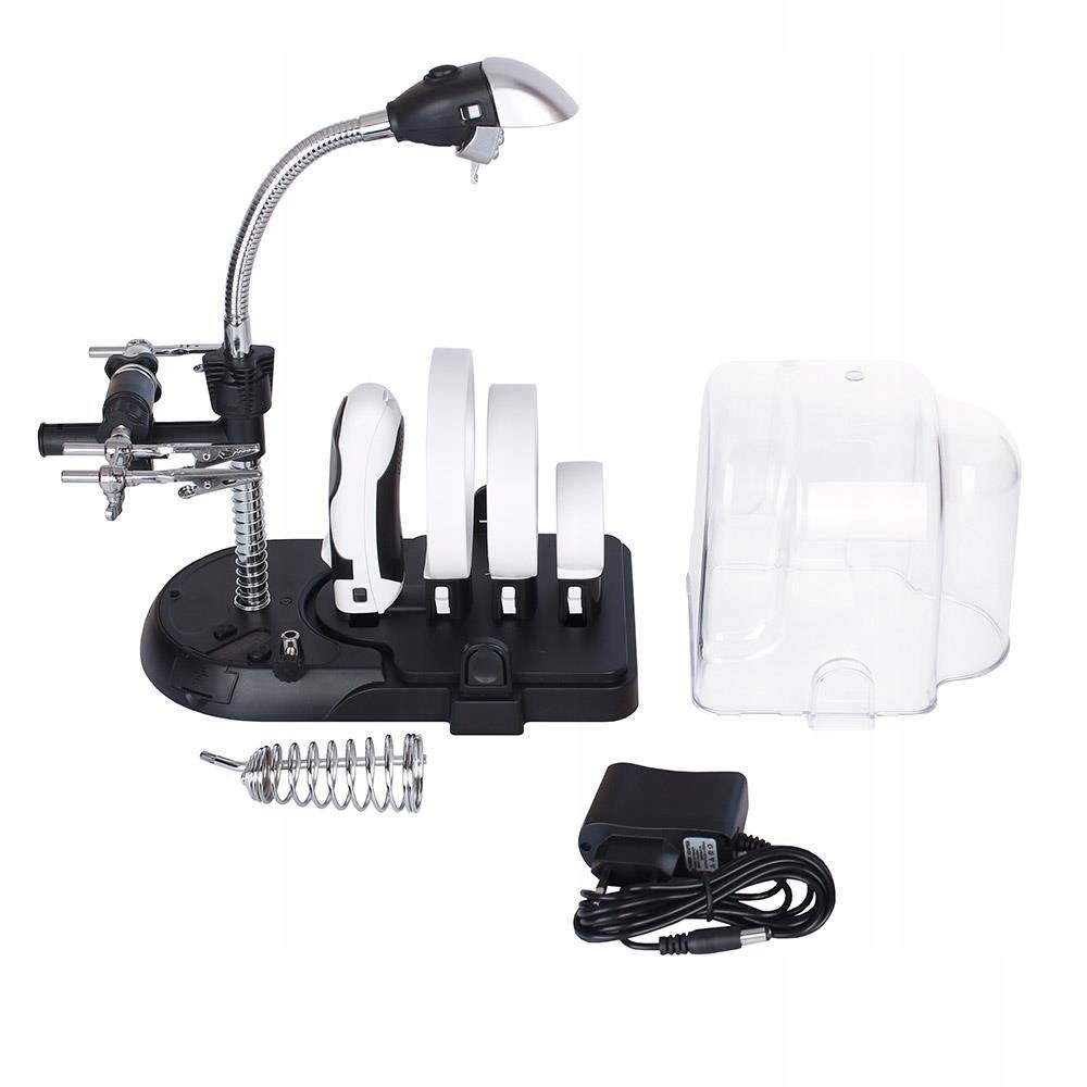 В комплект также входит эргономичный держатель, на который можно установить сменные линзы. Держатель также оснащен встроенным освещением, состоящим из двух светодиодов и работающим от батареек. Лупа предназначена для ремонта небольших устройств, точной сборки деталей, поделок, склеивания моделей, ремонта часов/ювелирных изделий и многих других применений.