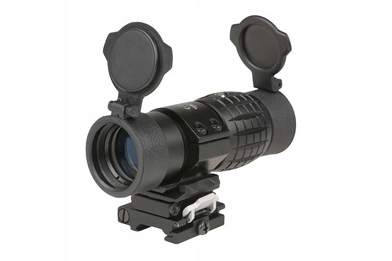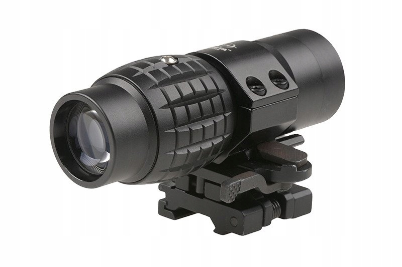 Лупа крепится с помощью шарнира, который позволяет наклонять ее в сторону при не используется. Сама лупа с креплением RIS крепится на стабильную защелку QD.
