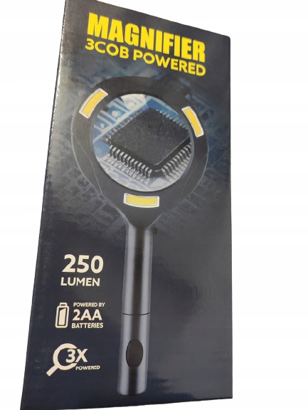 Ручная лупа с линзой диаметром 82 мм и реальным увеличением x3. Изготовлен из оптического стекла высокой прозрачности. Подсветка в виде 3-х сильных COB-диодов обеспечивает отличную видимость просматриваемого предмета.