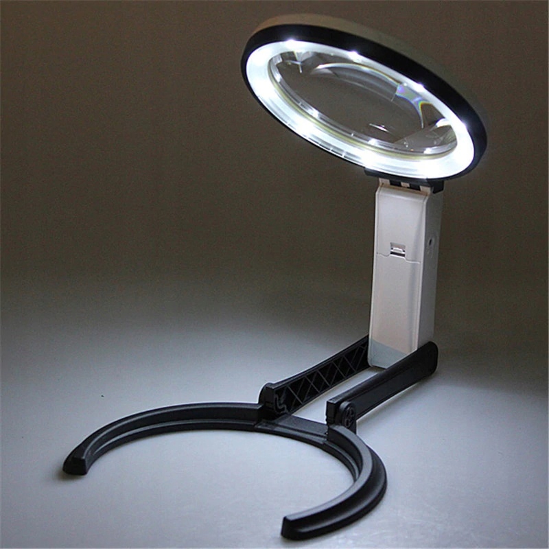 - После складывания мы имеем ручку, которую удобно держать, благодаря чему мы можно использовать как обычную лупу (с подсветкой). )