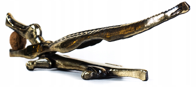 Дедушка из латуни польского мастера - отлита из двух частей, соединенных заклепкой. Представленный дедушка - крокодил, выполненный в полированной версии. Несмотря на свою оригинальную форму, он полностью приспособлен для раскалывания орехов. Изделие покрыто лаком, чтобы латунь не окислялась.