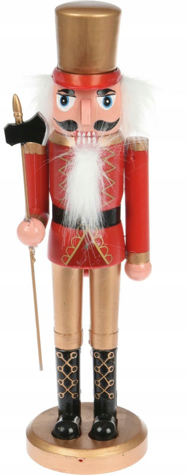 Украшение «Щелкунчик» в красных и золотых тонах становится хитом каждого Рождества. Симпатичный солдат с пушистыми белыми волосами покорит сердце домочадцев. Щелкунчик завершит рождественскую композицию. Большая 28-сантиметровая фигурка изготовлена из пластика, что делает ее более прочной, чем ее деревянные аналоги. У Дедушки круглая основа, благодаря чему он устойчиво стоит, поэтому мы легко сможем украсить ею новогодний стол или камин.