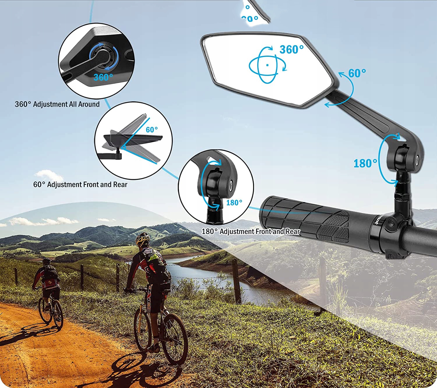 Велосипедные зеркала имеют дизайн HD 5,9 /15–2,75 /7 см, что делает его более реалистичным, без искажений и головокружения, зеркальные блоки четко видят встречные автомобили позади вас, делает вашу поездку безопасной и легкой.