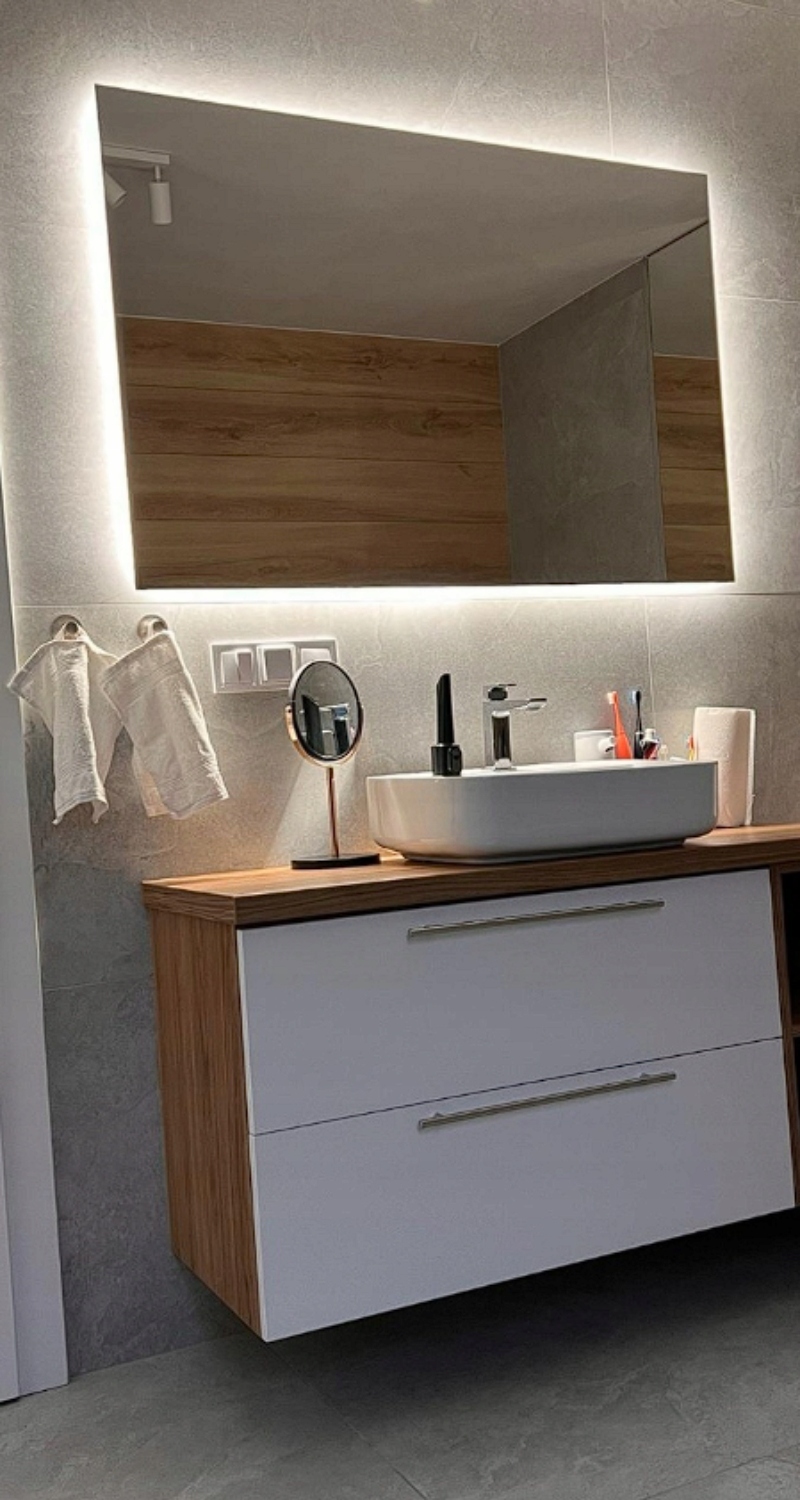 СВЕТОДИОДНОЕ ЗЕРКАЛО 70x60 см ДЛЯ ВАННОЙ СВЕТОДИОДНОЙ ПОДСВЕТКОЙ СОВРЕМЕННАЯ ФРЕЗИЯ