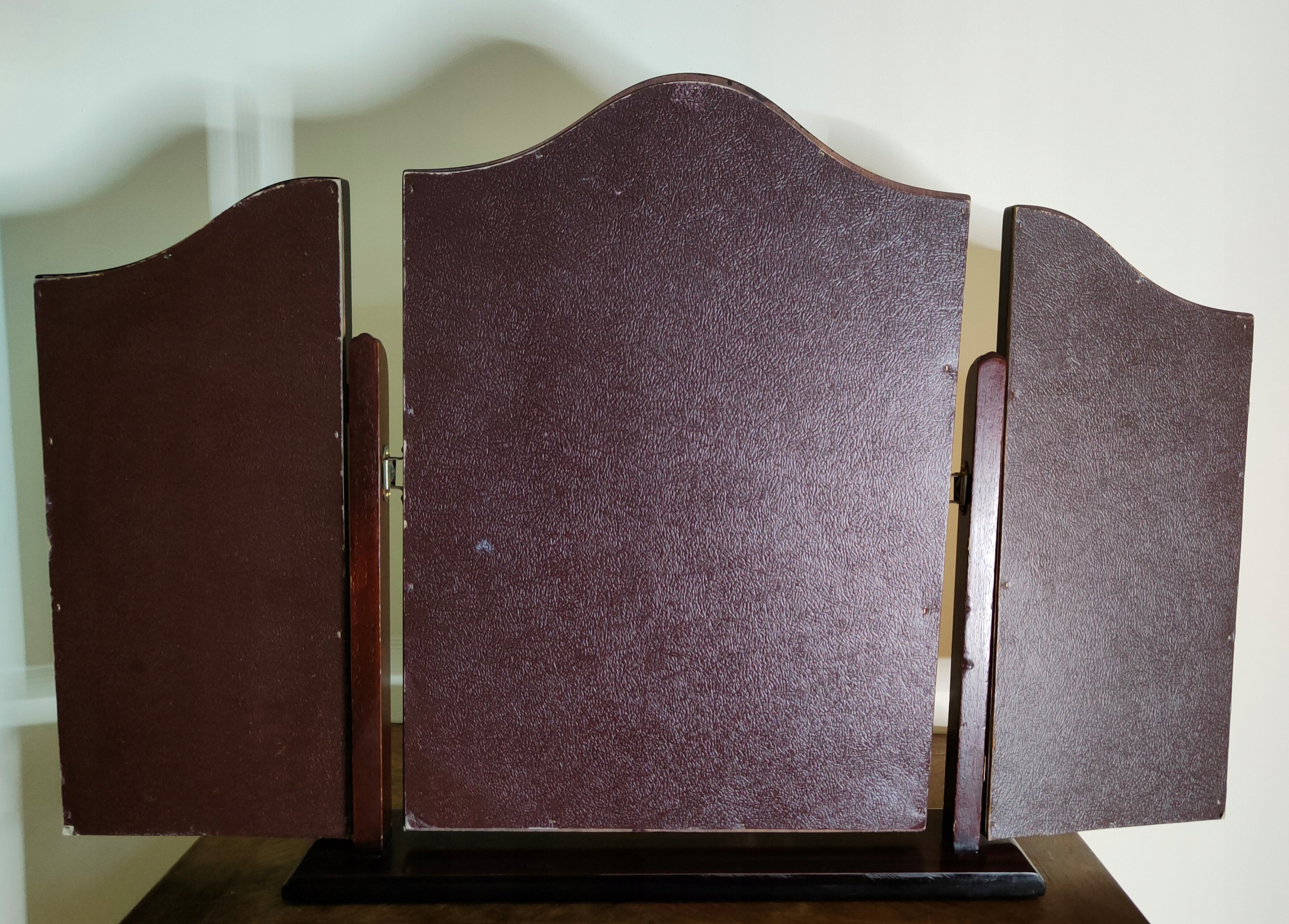 Зеркальный триптих с подставкой, красивый СТАРЫЙ БОЛЬШОЙ, 87,5 см
