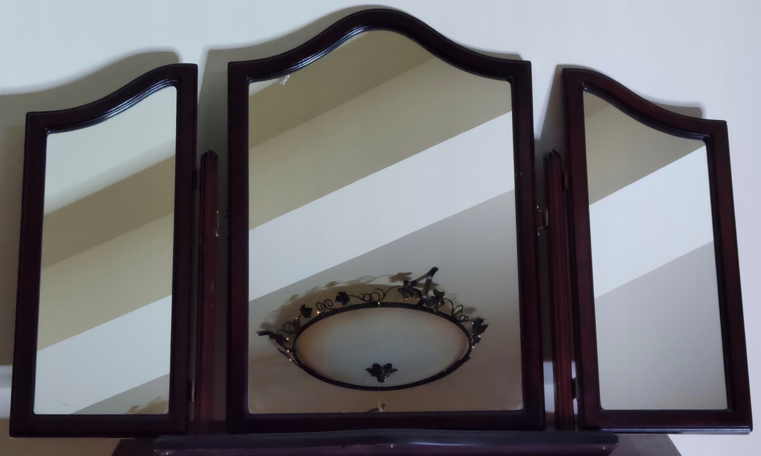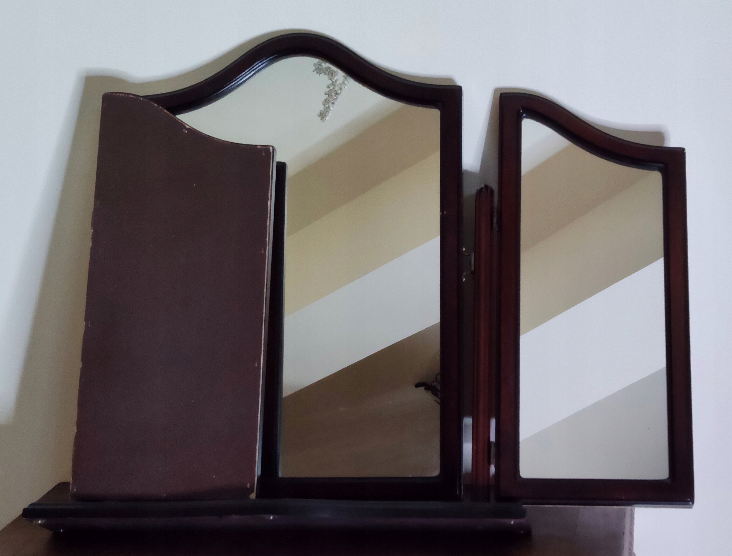 LUSTRO tryptyk z podstawą STARY ładny DUŻY 87 cm