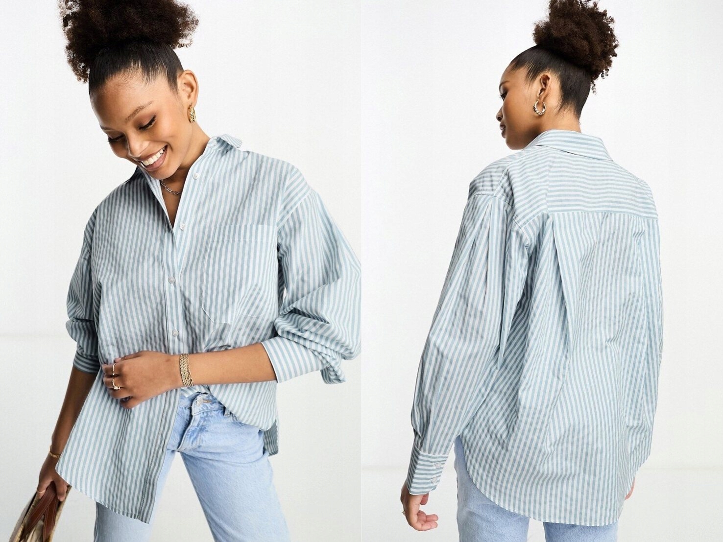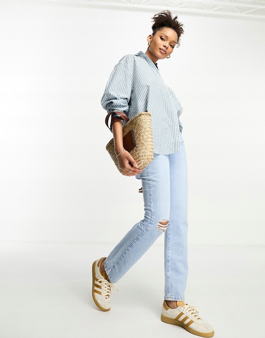 LUX Синяя оксфордская рубашка в белые полоски 46