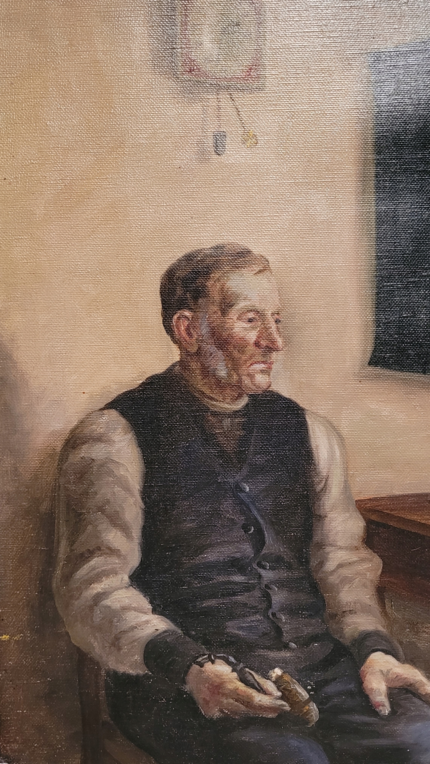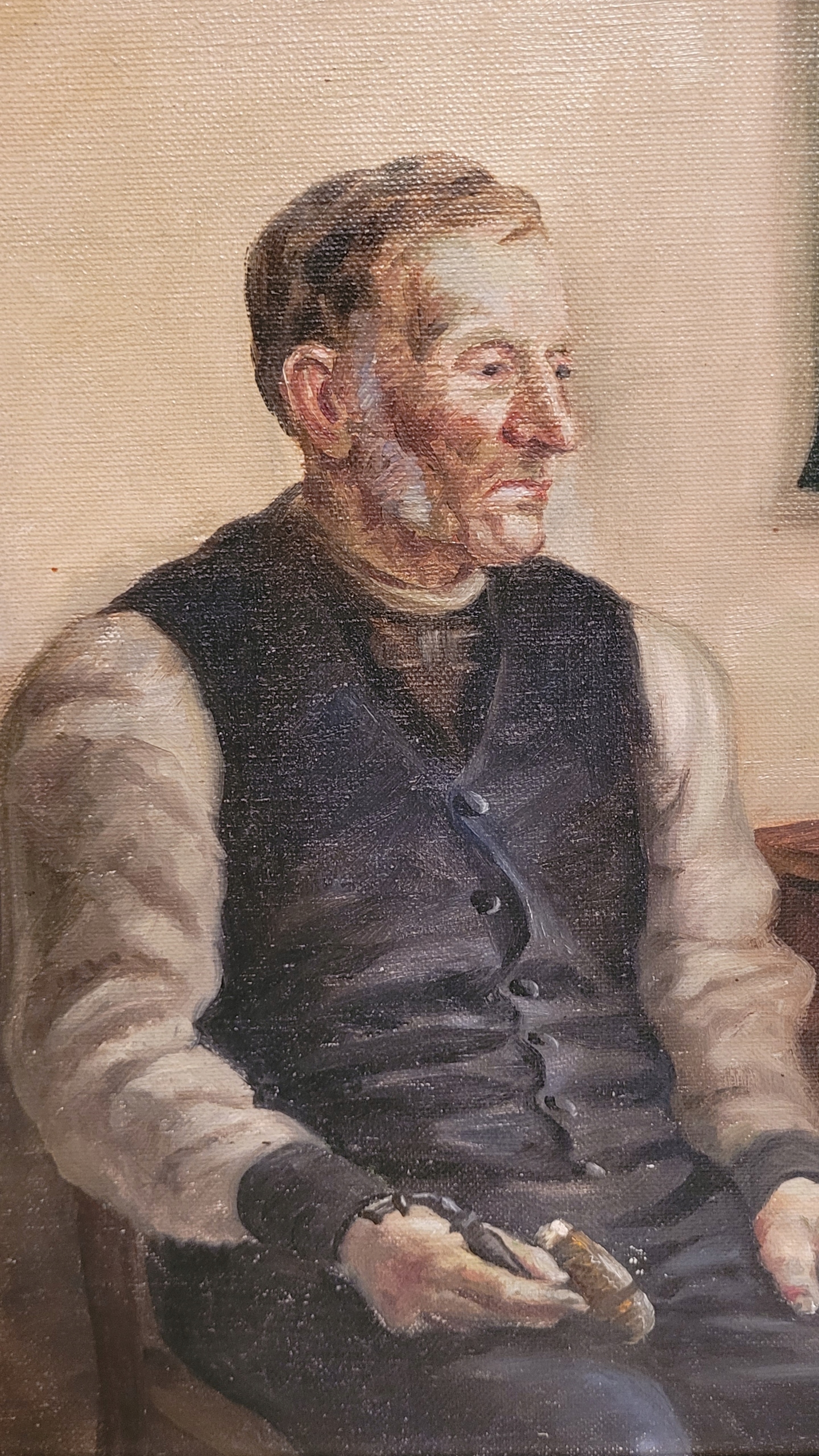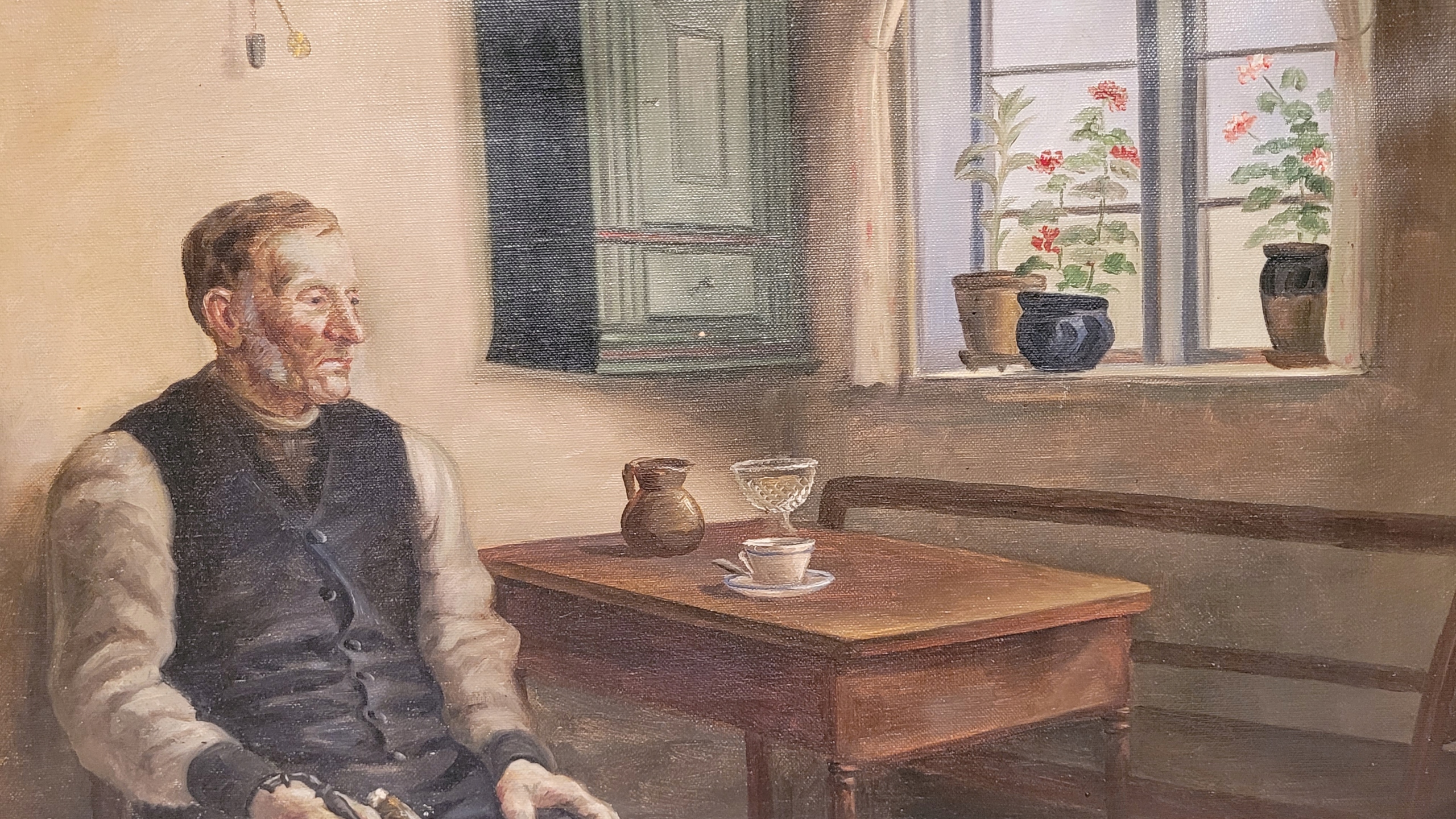Предмет продажи - красивая, старинная картина маслом "МУЖЧИНА НА КУХНЕ".