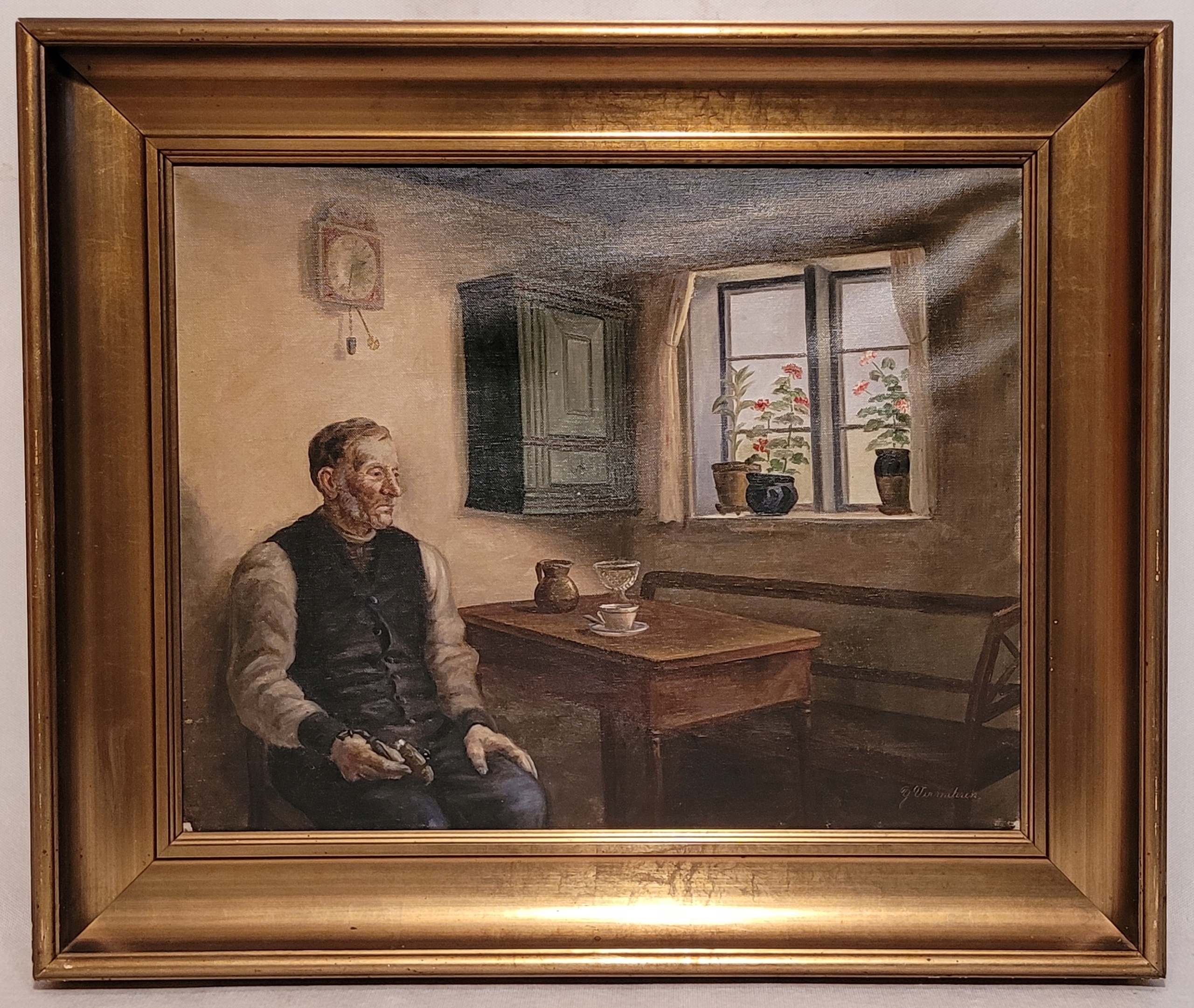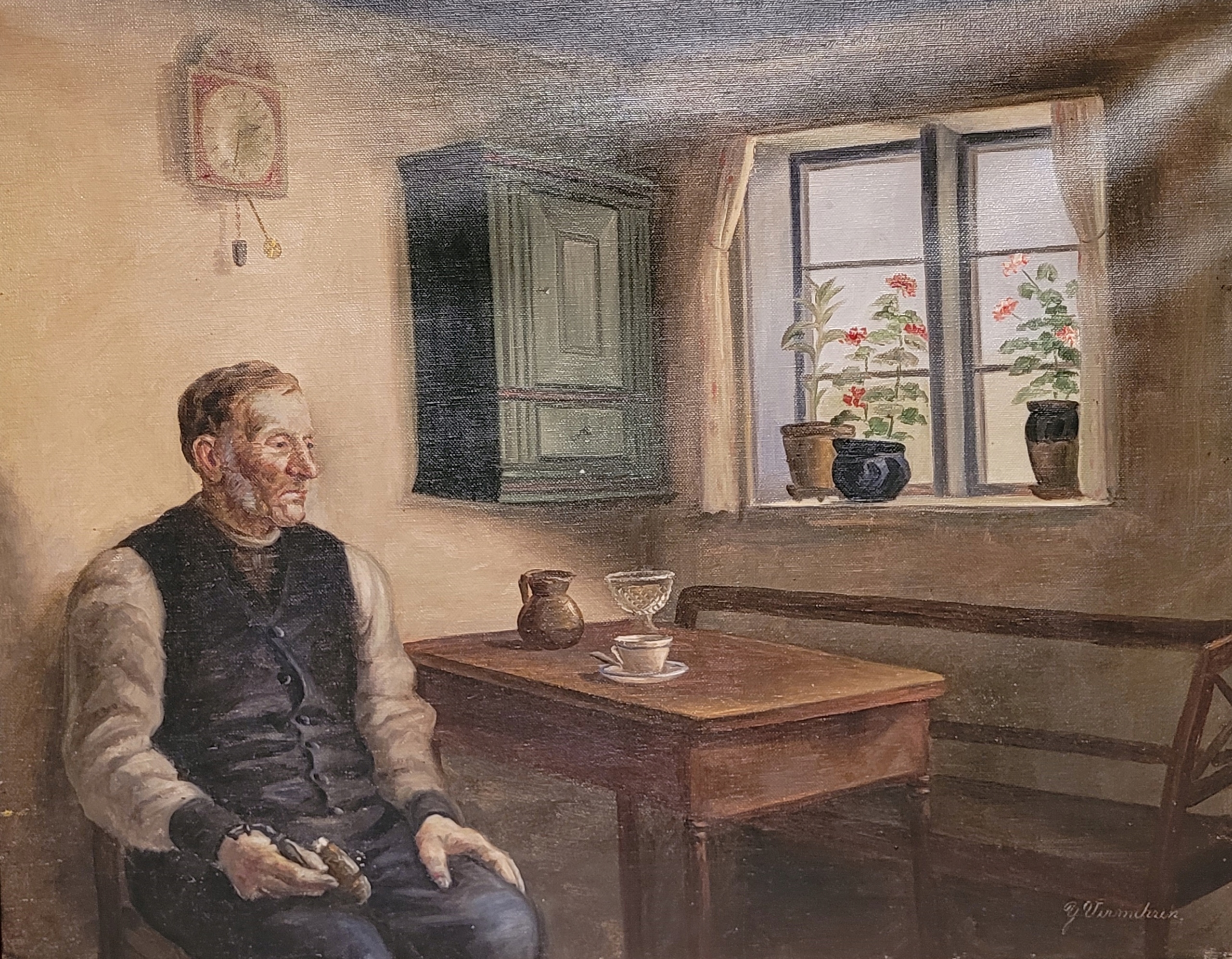 Елва ВЕРМЕРЕН (1878-1980) - «МУЖЧИНА НА КУХНЕ», старая картина маслом