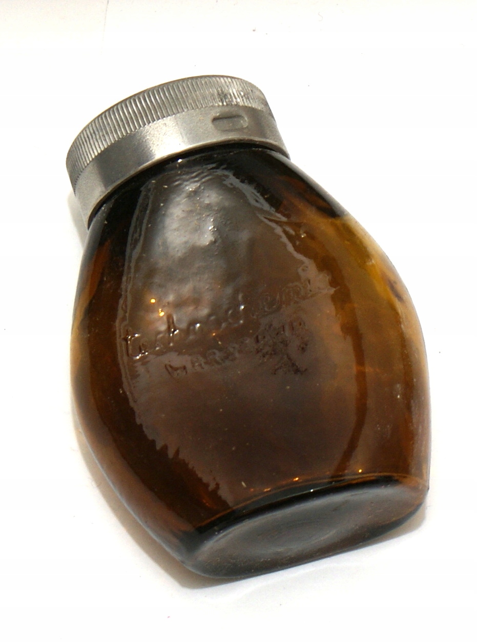 - Плевательница для больных туберкулезом из коричневого стекла с металлическим колпачком – 1 искусство