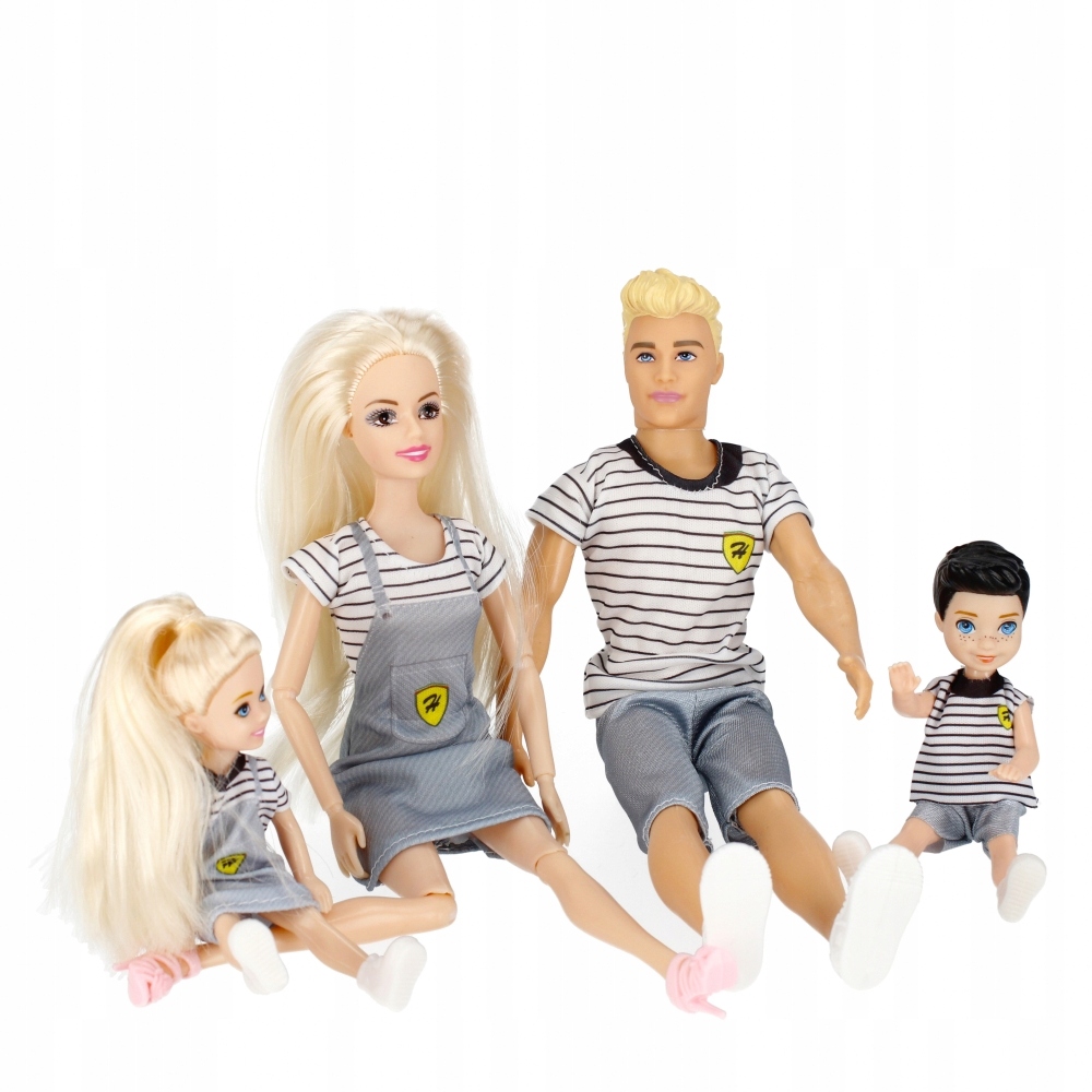 Содержимое набора: кукла-мама, кукла-папа, 2 детские куклы. Игрушка изготовлена из пластика, искусственных волос и ткани.