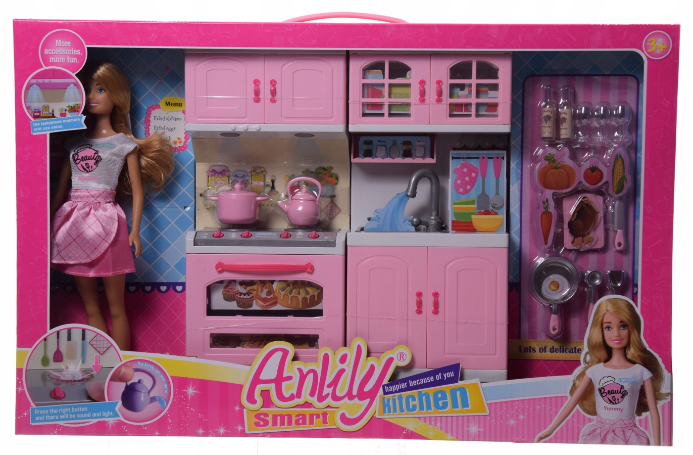 Играть с куклой в вашем доме будет хорошо разнообразно, спасибо Кухонная мебель. Mebles, полностью изготовленные из пластика Они отражают настоящую кухонную мебель. Веселье в хозяйке Это понравится каждой девушке, которая внимательно следит за миром Взрослые и любят создавать свои идеи, чтобы стать великой домохозяйкой. В кукле длинные светлые волосы, платье с фартуком все сохраняется в пастельных тонах. Кухонная мебель разделена на Два стены, имеют открытие шкафов, раковина с рабочей M TAP и Звуковой эффект, духовка с звуковыми эффектами.