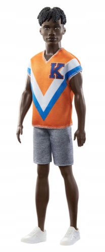 Кукла Кен в оранжевой футболке. Куклы Барби и Кен выполняют самые разные профессии, вдохновляя детей на исполнение самых сокровенных мечтаний! У Кена вьющиеся черные волосы и стильный наряд: спортивная рубашка и шорты.