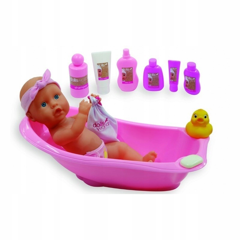 В этот красивый набор аксессуаров от Dolls World входит полнофункциональная кукла длиной 38 см и пластиковая ванночка, которую можно использовать для купания с набором аксессуаров.