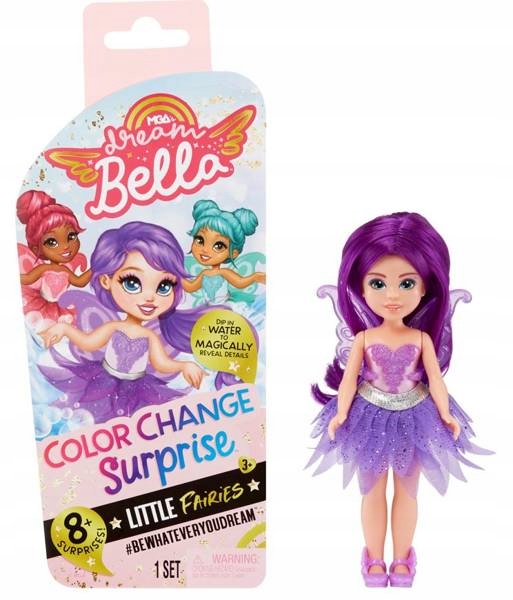 Куклы MGA's Dream Bella Color Change Surprise Fairies дарят вам незабываемые впечатления от распаковки, полные сюрпризов! В каждой упаковке содержится кукла-нарядник, но внешний вид каждой куклы остается загадкой, пока он не раскрывается с помощью игры по изменению цвета. Тогда девочки найдут очаровательную куклу с париком, крыльями, туфлями и юбками.