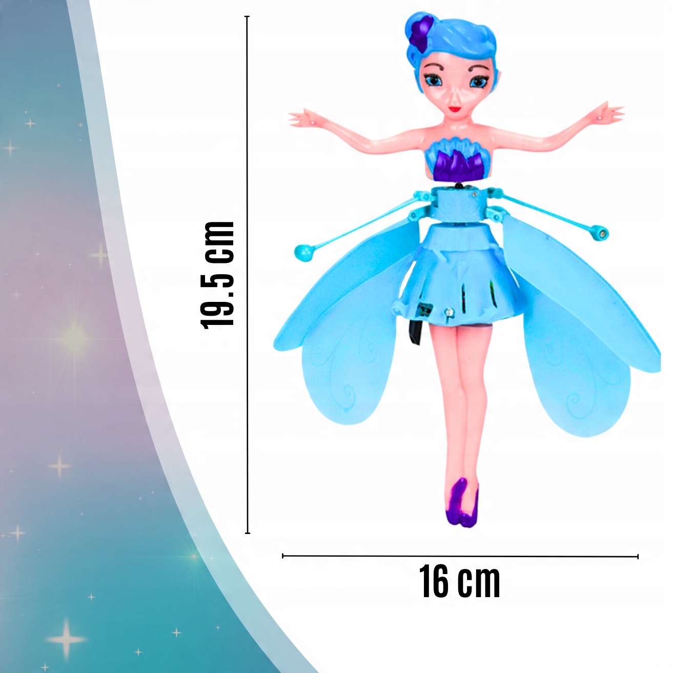✔️Простота в использовании✔️Эта кукла обеспечивает легкую и приятную игру, не требующую сложных инструкций или многих часов обучения. Просто включите его с помощью кнопки на платье (удерживая за ногу), и оно готово к полету. Вы управляете им, поднимая его вверх и перемещая руку в выбранном направлении. Это интуитивно понятная операция, которую даже самые маленькие дети освоят в мгновение ока.