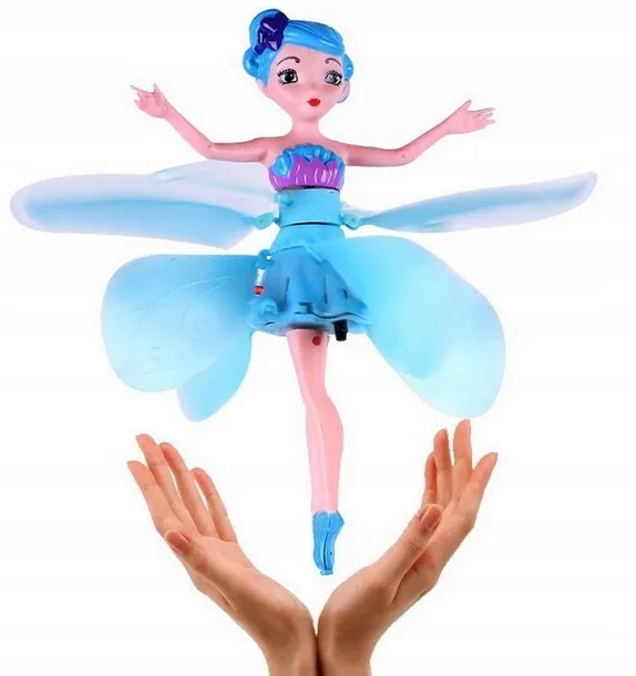 Пусть кукла поднимается и опускается. Рукой контролируем ее ножки, куда она должна полететь. Пока фея летит, ее платье переливается разноцветными огнями, делая веселье еще привлекательнее.