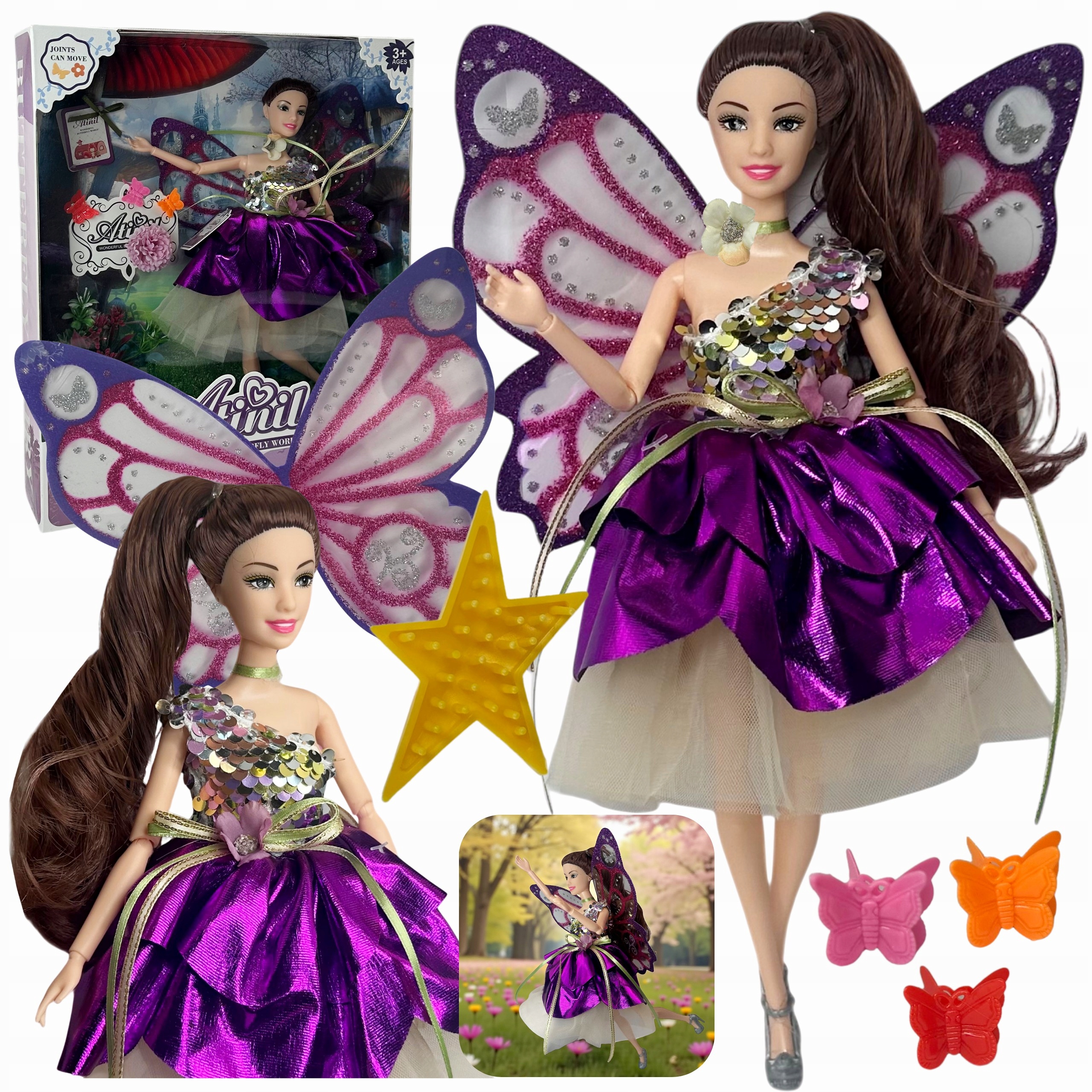 ЛЯЛЬКА ФЕЯ ЧАРІВНА ЛІТАЮЧА ЗІ ЗНІМНИМИ КРИЛАМИ ПЛАТТЯ АКСЕСУАРИ