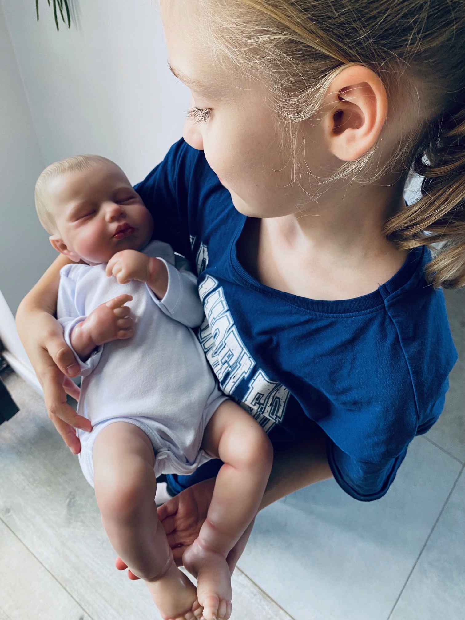 Силиконовая кукла, расписанная вручную. Силиконовые ручки, ножки и голова с нанесенными отпечатками пальцев, волосками, румянцами и всеми деталями, которые есть у живого новорожденного. Живот тканевый, наполненный и мягкий. Ноги и ручки можно двигать в разные стороны.