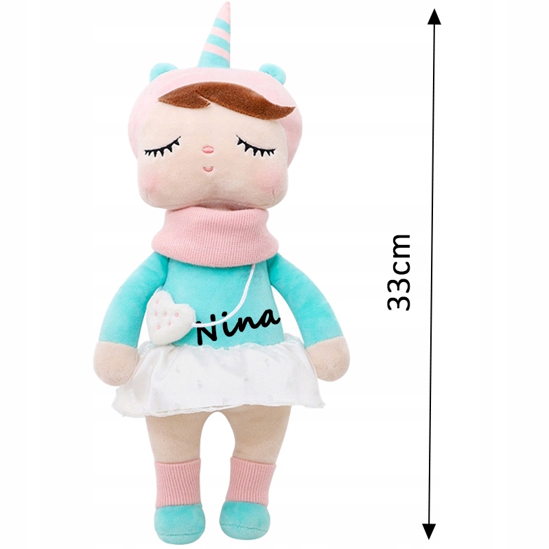 При покупке в сообщении продавцу дайте текст, который вы хотите отобразить на кукле. Благодаря этому мягкая игрушка станет уникальной.