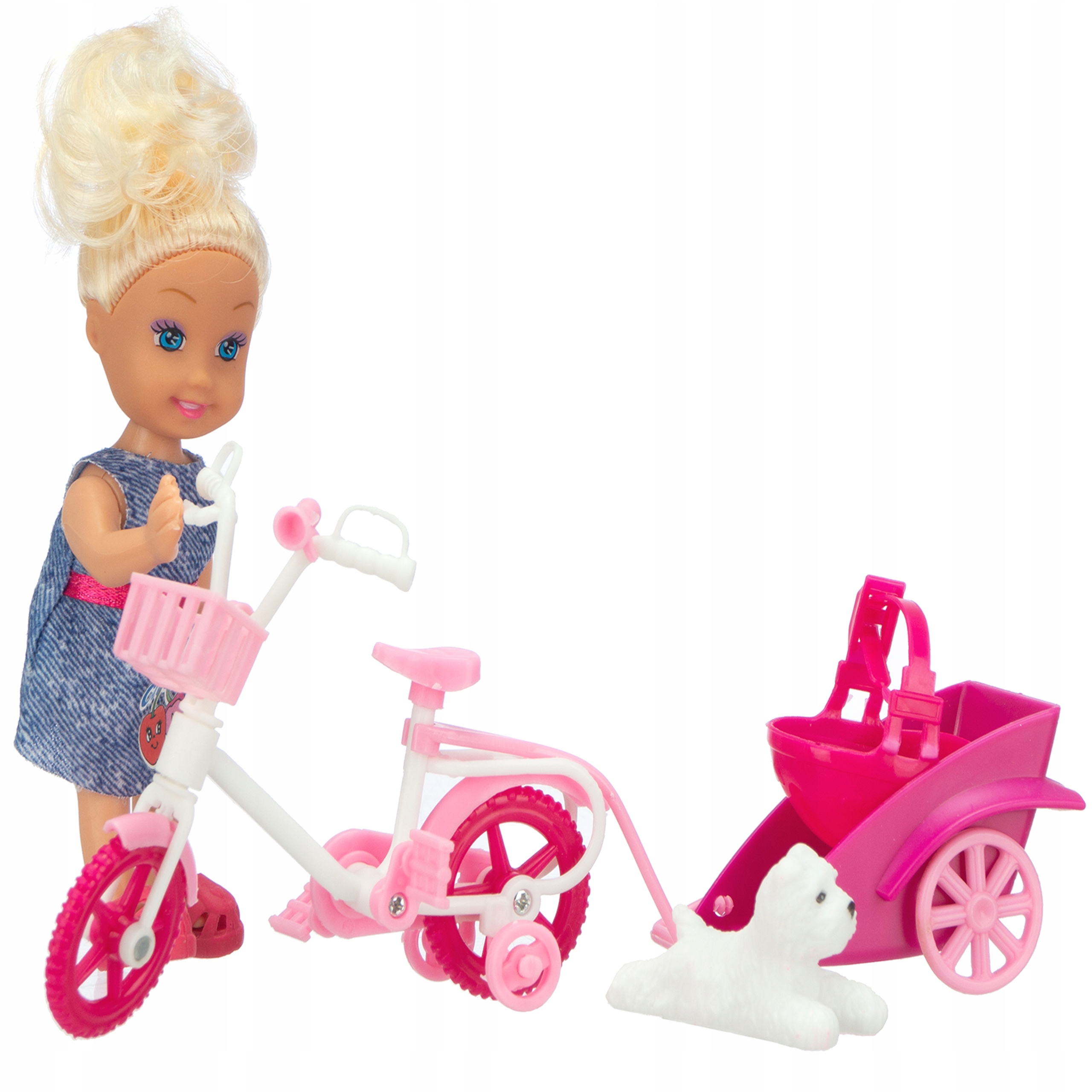 НАБОР КУКЛА С СОБАКОЙ НА РОЗОВО-БЕЛОМ ВЕЛОСИПЕДЕ С ПРИЦЕПОМ ДЛЯ СОБАКИ. ИДЕАЛЬНО ДЛЯ ДЕВУШЕК, ЛЮБЯЩИХ СПОРТ И ЖИВОТНЫХ
