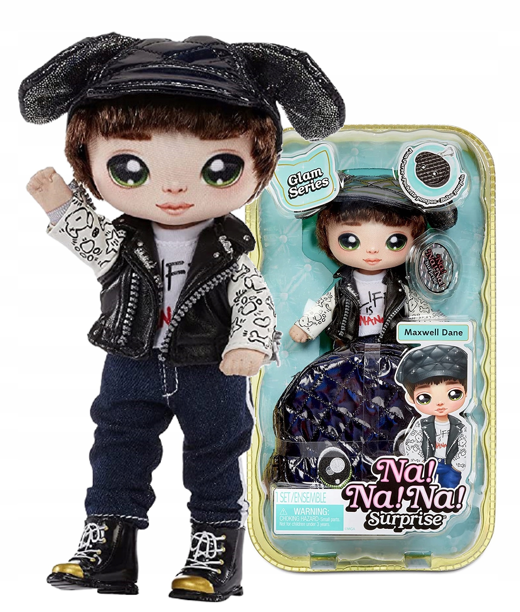 Кукла NaNaNa Surprise Glam Maxwell Dane. Кукла - мальчик в джинсах и кожаной куртке. В комплект входит глянцевый черный помпон. Брюне Максвелл выглядит элегантно. Она с радостью отправится в город с еще одной куклой из серии Glam.