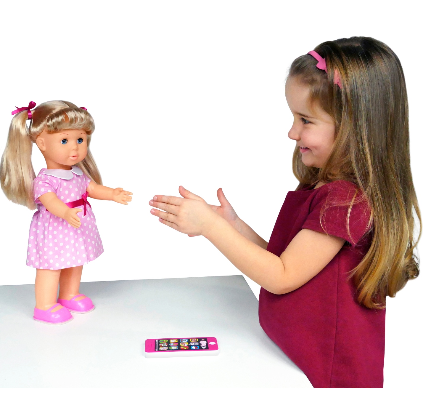 - Нажав одну из кнопок на смартфоне, вы увидите, как отреагирует кукла!