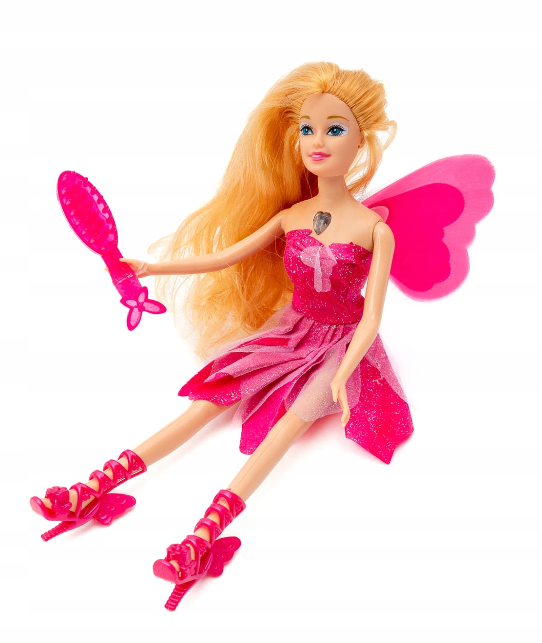Кукла с длинными светлыми волосами обладает волшебными способностями - у нее крылья блестят!