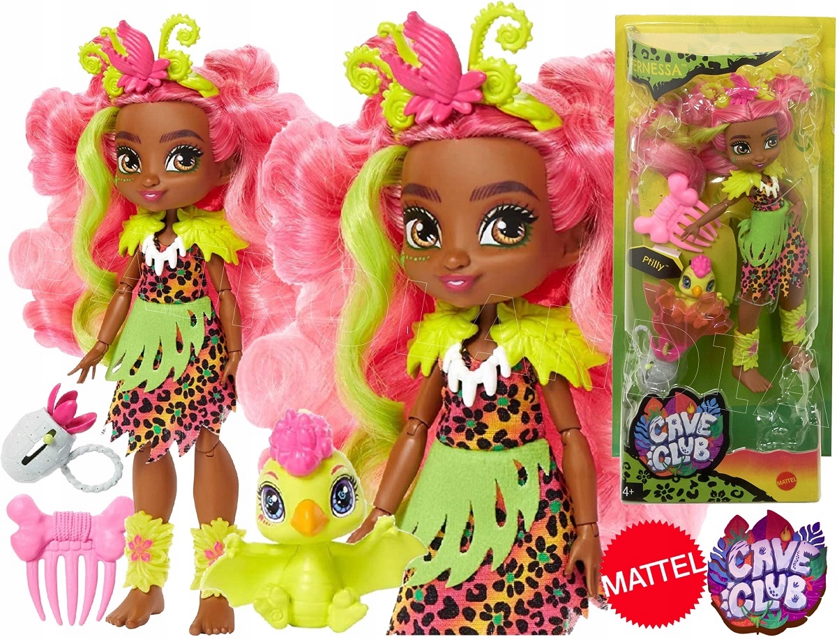 Кукла пещерного человека в доисторическом наряде и ее очаровательный питомец. Вместе с Фернессой отправляйтесь в мир Cave Club и испытайте свои доисторические приключения.