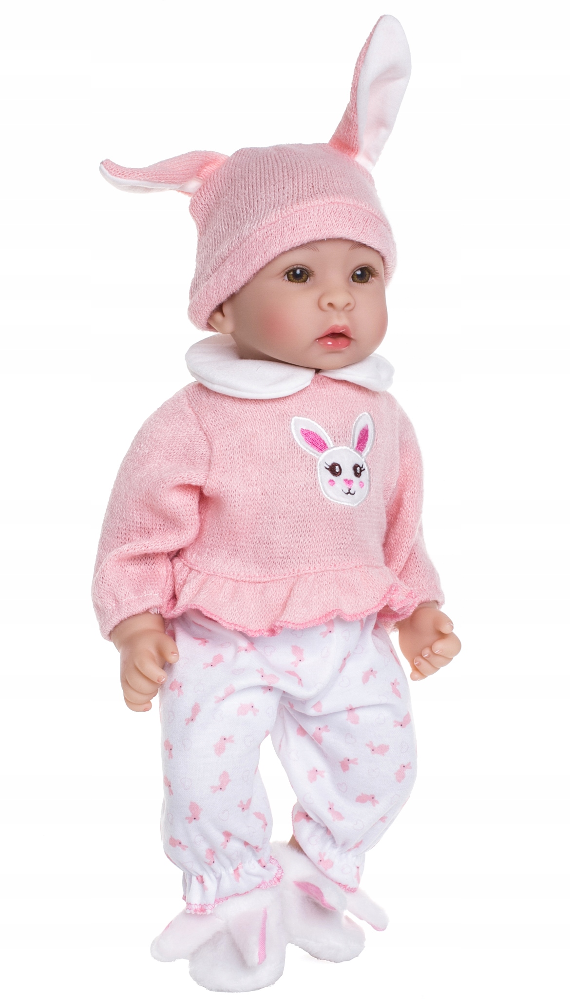 Кукла лежит в руках как настоящий ребенок, ее можно обнимать и укачивать.
