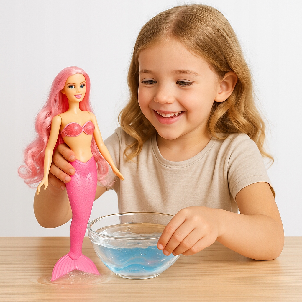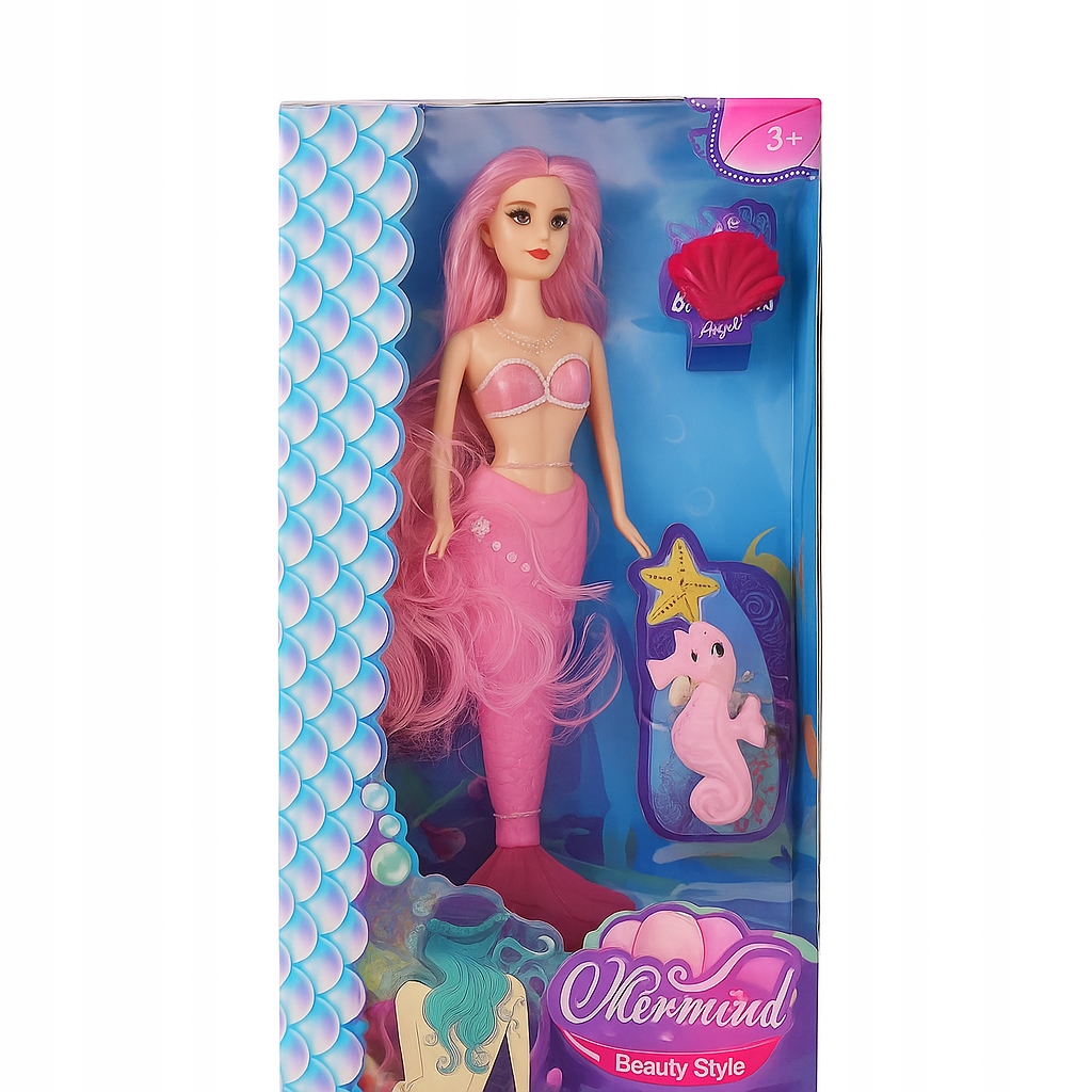 Погрузитесь в волшебный мир подводных приключений! Красивая кукла-русалка – подарок мечты для каждой девочки, которая любит сказочные истории. У нее длинные розовые волосы, блестящий хвост и красочная макушка. В комплект также входит милый морской конек и сумка в форме ракушки.