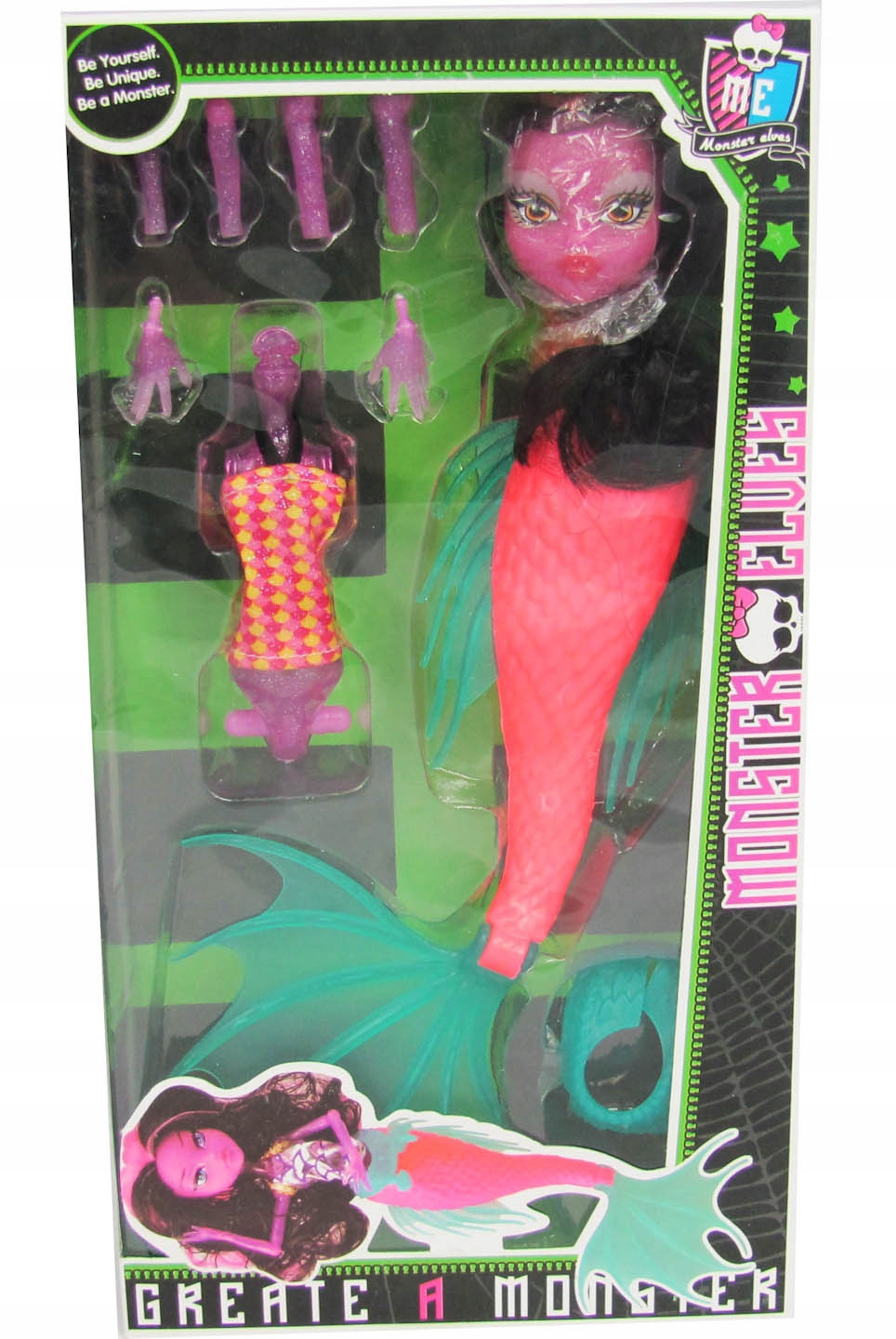 Сочетание куклы-монстра и русалки. У куклы розовый цвет, Кожа блестящая, тело и руки прозрачные. Хвост он розовый, с двумя зелеными плавниками по бокам и одним большой и дополнительно подвижный на конце хвоста. Есть кукла потрясающе, потому что тебе придется собрать это самому, да развивает ребенка, доставляет ему удовольствие, а значит и его руки куклы сгибаются во всех суставах: в плече, в локте. и в запястье. У куклы красивые, густые, длинные волосы. В комплект входит пояс. Рост куклы 33 см.