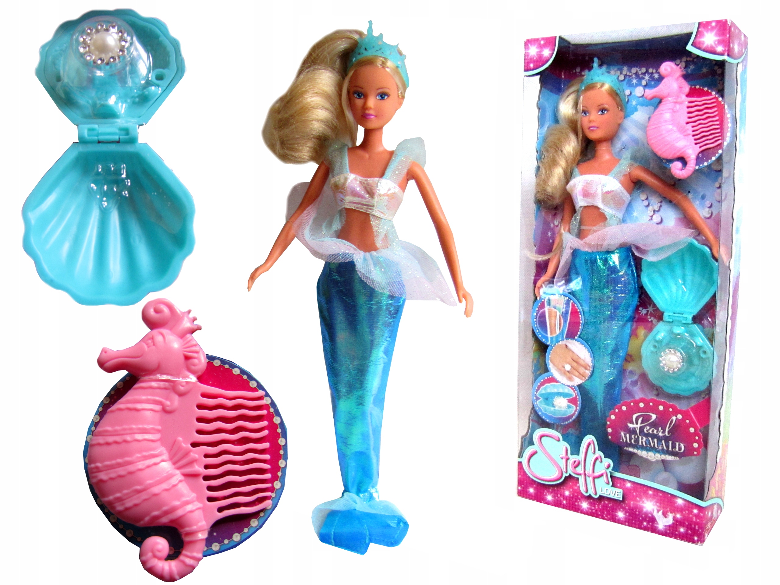 ЛЯЛЬКА РУСАЛКА STEFFI + ГРЕБІНЕЦЬ + КІЛЬЦЕ З ПЕРЛИНОЮ