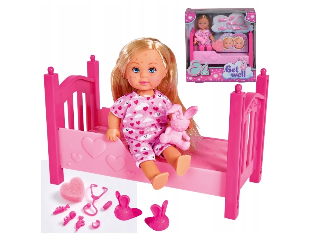 Наша больная кукла лежит в постели, но мы можем ей помочь. Мы видим, что у нее на лице сыпь, но если мыть ей лицо губкой, она чудесным образом выздоровеет. Замечательная кукла для девочек, благодаря которой наши дети почувствуют себя хорошими опекунами. Обратите внимание, что при повышении температуры у куклы сыпь может появиться снова,