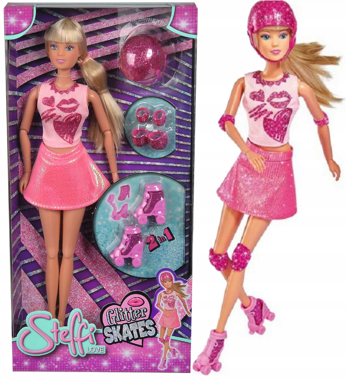 КУКЛА STEFFI НА РОЛИКОВЫХ КОНЬКАХ + ШЛЕМ ПРОТЕКТОРЫ SIMBA