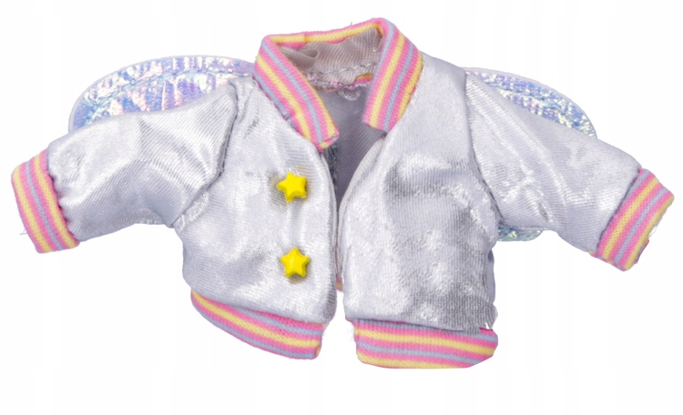 Дженна у нее красивые радужные волосы и она одета в модный наряд: бело-синее многоярусное платье, Бомбер с эффектом металлик и милые розовые туфли! Стиль дополняют такие аксессуары, как: сумочка в форме конфеты, волшебное ожерелье BFF и ободок с милыми звериными ушками.