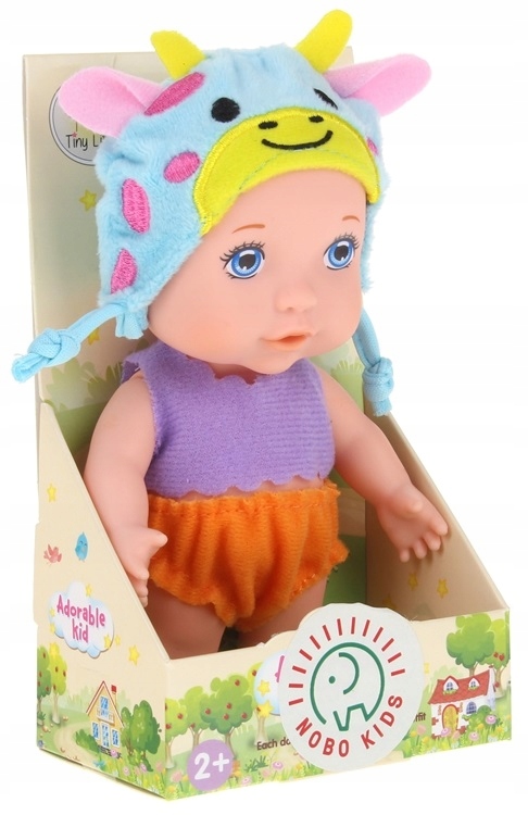 Куколка одета в шортики, футболку и яркую шапку, напоминающую животное. Его можно снять и изменить цвет между комплектами. Кукла полностью сделана из резины. Голова и руки куклы подвижные, самостоятельно она не стоит.