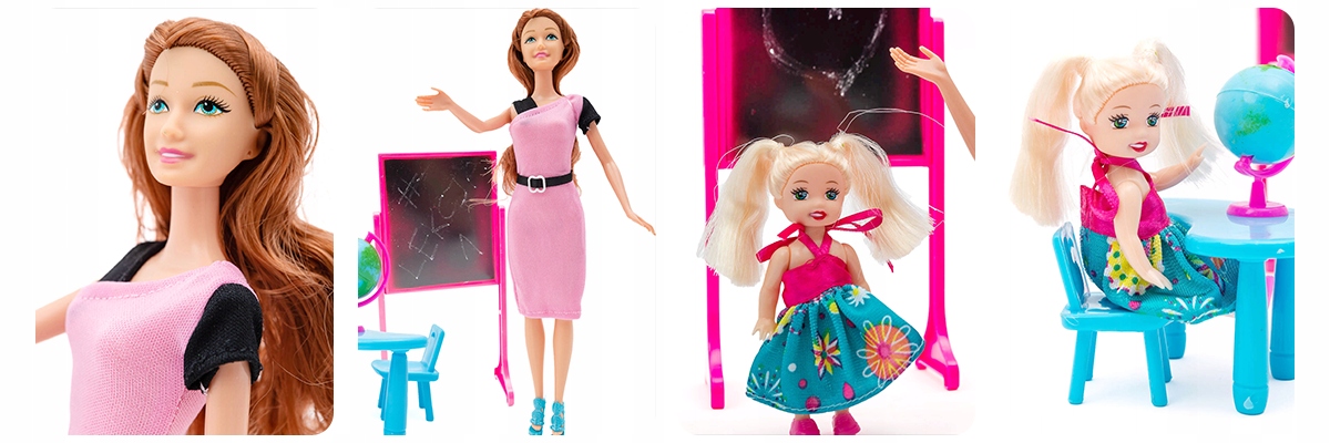 ✅ Учитель — кукла с длинными волосами и красивым платьем.