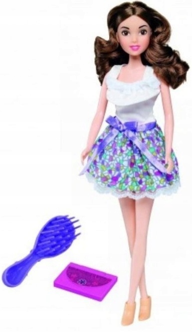 Красивая кукла Виолетта одета в яркую юбку с кружевной низ, а также белая блузка с рюшами, и, конечно же, красивые кремовые туфли.