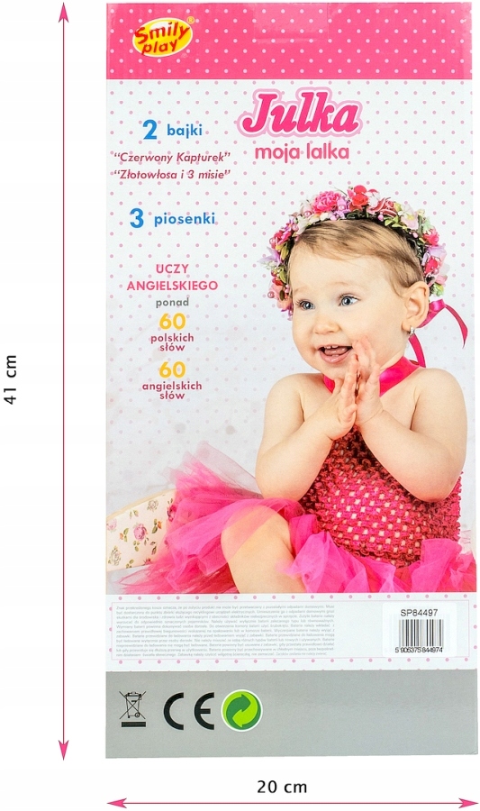 Кукла Юлька – уникальная игрушка, которая подарит вашему ребенку массу радости и познавательных впечатлений. Юлька может спеть целых 3 песни и рассказать 2 сказки: «Красная Шапочка» и «Златовласка и 3 мишки». Более того, Юлька может общаться как на польском, так и на английском языке, развивая таким образом навык правильного произношения и изучая иностранный язык.