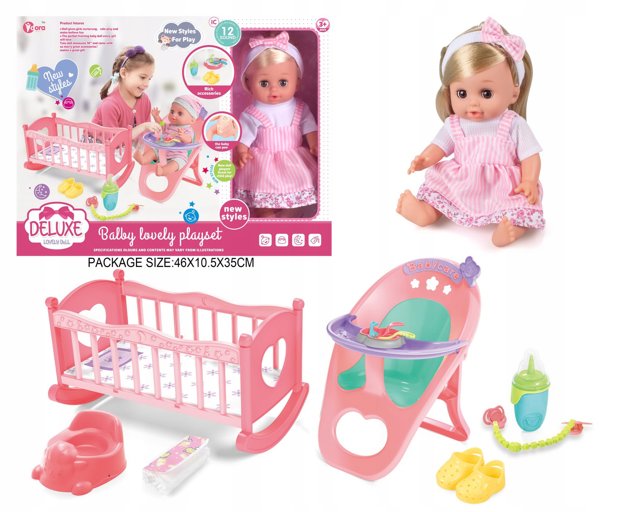 КУКЛА С ЛЮЛЫКОЙ И СИДЕНЬЕМ ДЛЯ КОРМЛЕНИЯ + АКСЕССУАРЫ