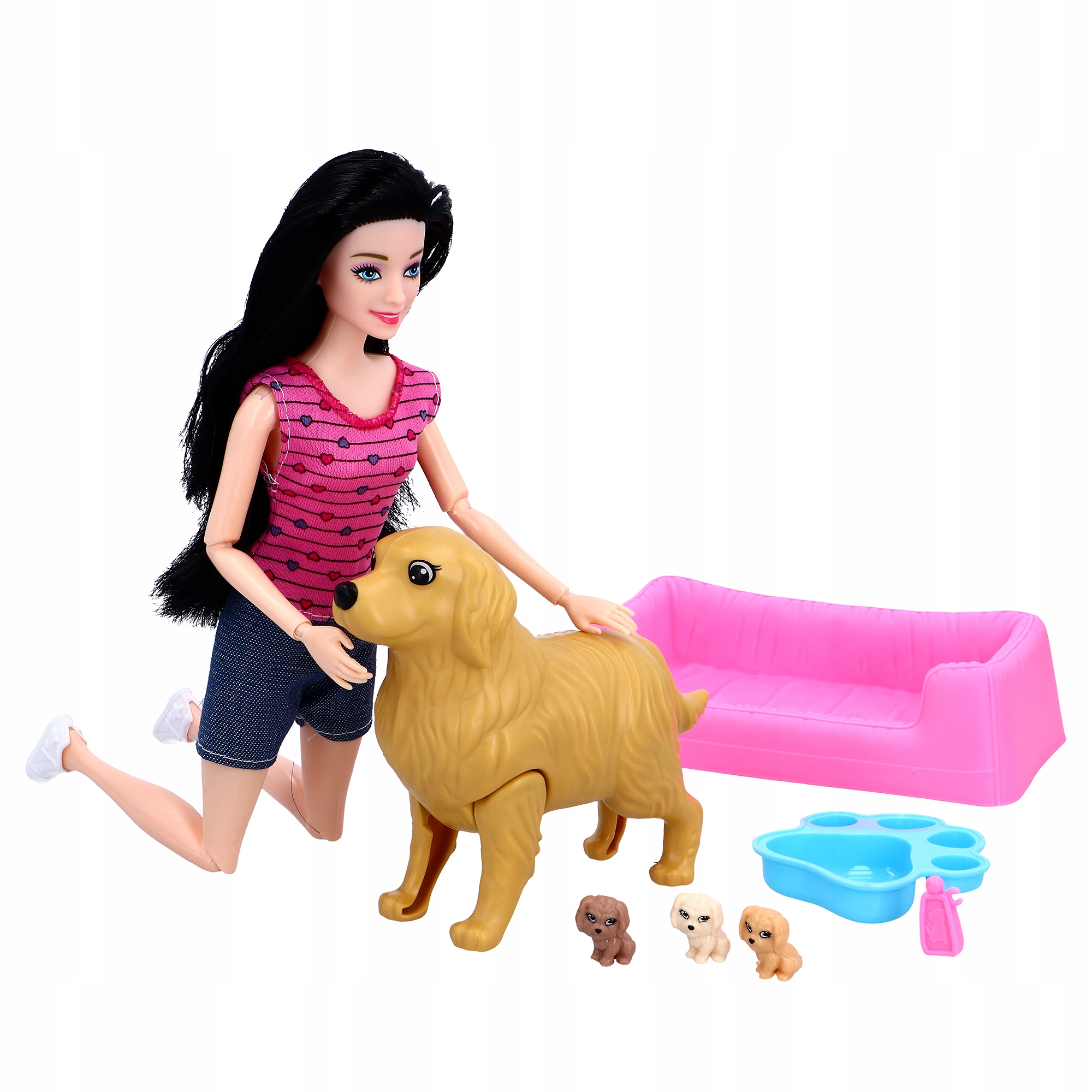 Кукла, благодаря сгибаемым коленям, может удобно сидеть рядом с мамой собаки.