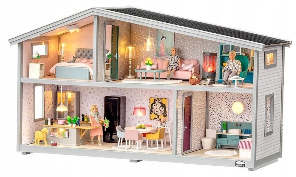 Кукольный домик шведского бренда Lundby очень светлый и просторный, благодаря чему он обеспечит комфортную жизнь вашему ребенку. Он имеет два этажа, двускатную крышу, 4 комнаты открытой планировки, украшенные настоящими художественными обоями шведского бренда Sandberg в пастельных тонах, окна и разноцветные двери. Выдвижные задние стенки позволяют играть с обеих сторон. Кроме того, задние стены нижнего этажа оклеены обоями с обеих сторон, поэтому при переворачивании они создают красивую декоративную стену в растительном стиле. Позвольте вашему ребенку развить свое воображение и обставить и украсить дом в соответствии со своими собственными идеями с помощью совместимого ассортимента детализированной мебели, кукол, аксессуаров и предметов интерьера Lundby, которые продаются отдельно, а также доступны отдельно, специально разработаны для игр, светодиодные лампы с таймером освещают дом и делают его еще более приятным. кукольный домик поощряет ролевые игры и рассказывание интересных историй, развивает творческие способности, эмоциональный интеллект, воображение и социальные навыки. Оборудование и куклы продаются отдельно. О бренде Lundby Шведский бренд Lundby уже почти 80 лет создает уникальные, очень реалистичные и детализированные кукольные домики и их полное оснащение, такое как мебель, куклы, элементы дизайна интерьера и элементы декора интерьера. Игрушки, разработанные в Швеции, позволяют детям создать свой собственный маленький мир, в котором они принимают все решения. Это не только источник отличного удовольствия, но и способствует развитию творческих способностей, эмоционального интеллекта, воображения и общения, а также развивает особо важные социальные компетенции. У Лундби есть масштаб 1:18 и все, что хочет ребенок, чтобы создавать свои собственные истории и приключения без ограничений. Они вдохновляют вас создавать собственный декор, обустраивать пространство и выбирать персонажей в соответствии с вашими идеями и предпочтениями. В просторных кукольных домиках стены украшены художественными обоями шведского бренда Sandberg, а богатая коллекция посвященных кукол, мебели и оборудования включает в себя даже различные виды освещения, что добавляет неповторимые впечатления и реализм предложению бренда Lundby и поражает детальным вниманием к деталям в этом маленьком мире детских игр, наполненном радостью безграничного творчества.